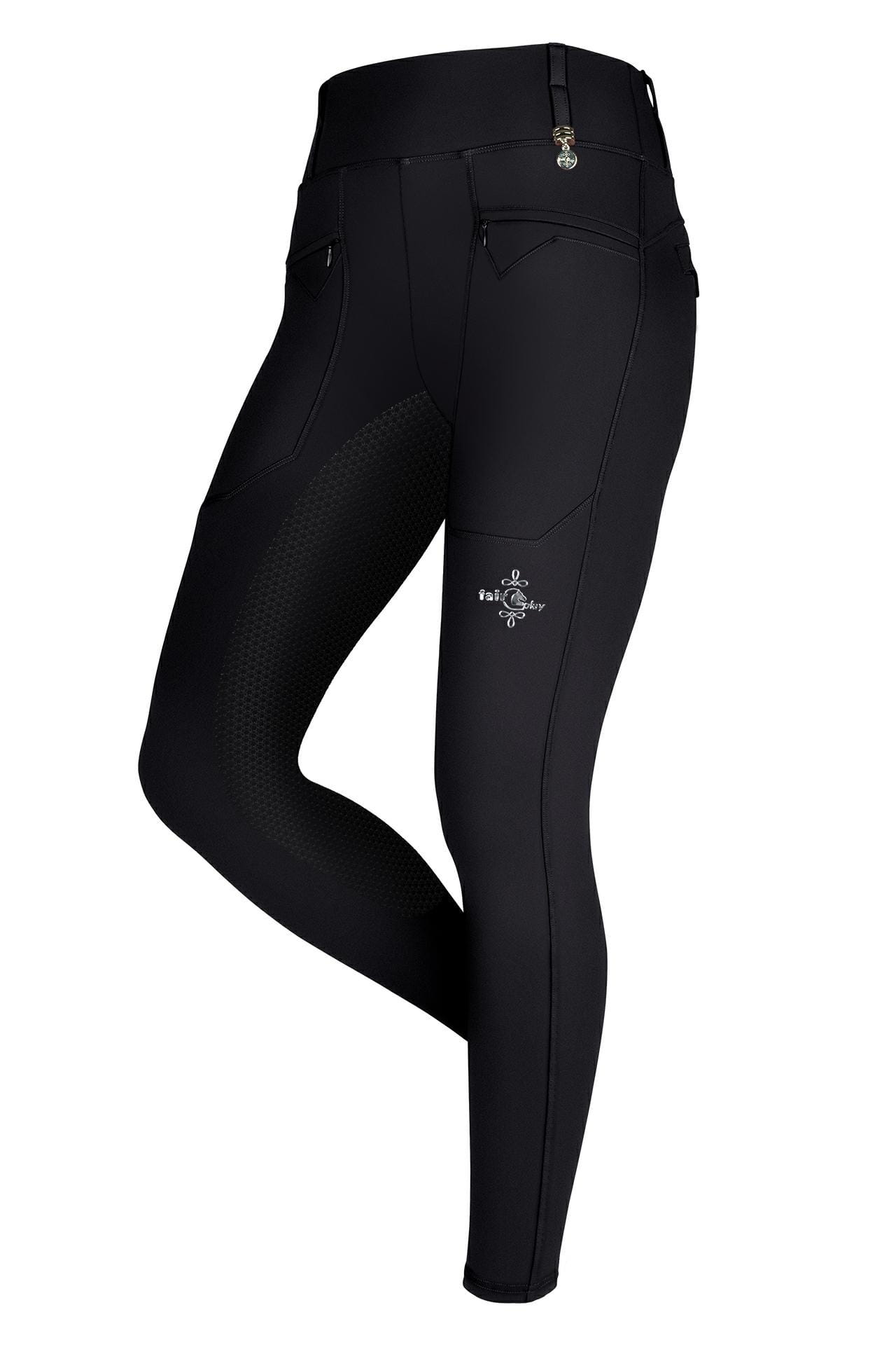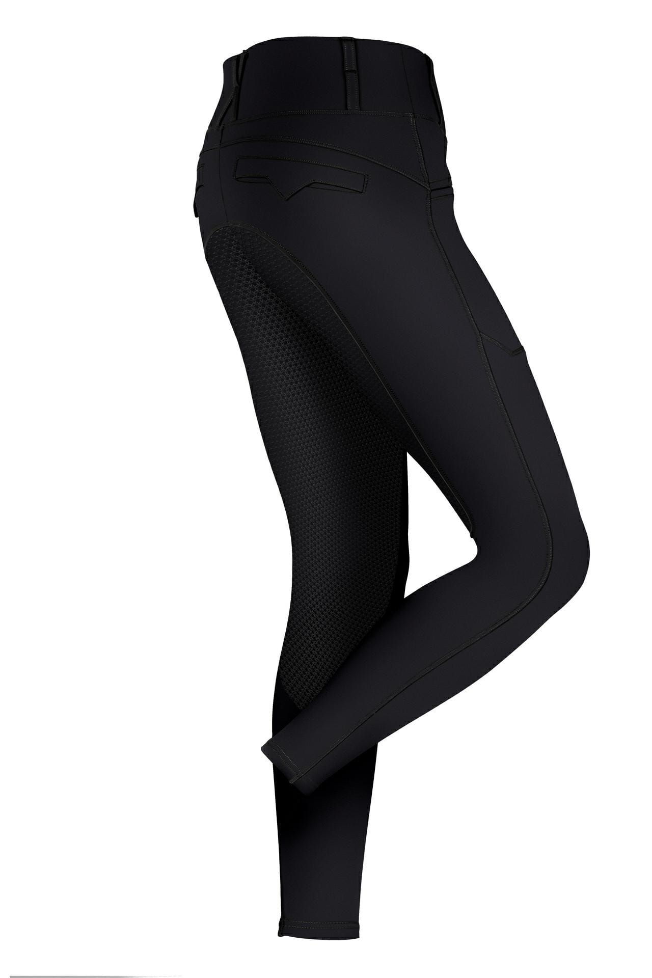 FP Bregginsy HEXA zimowe damskie łączą funkcjonalną dzianinę z podszyciem z polaru i dopasowany krój z wysokim pasem. Materiał rozciąga się w wielu kierunkach, więc podąża za ruchem w siodle i przy pracy na ziemi. Pełny, silikonowy lej zwiększa przyczepność do siodła, co poprawia kontrolę w zmiennych warunkach.