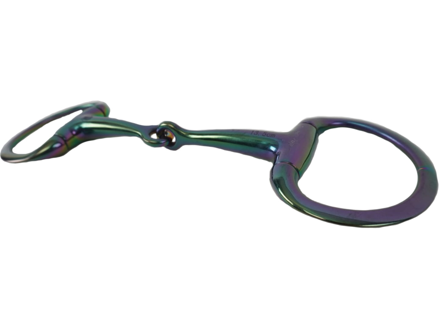 Nasze wędzidła są wolne od farb i barwników. Zabarwienie jest w rzeczywistości naturalną reakcją spowodowaną zanurzeniem tytanu w elektrycznie naładowanej wodzie. Wszystkie tęczowe wędzidła z obrotowym pierścieniem będą miały małe, bezbarwne ślady na pierścieniach. To nie wada, to efekt unikalnej metody barwienia.