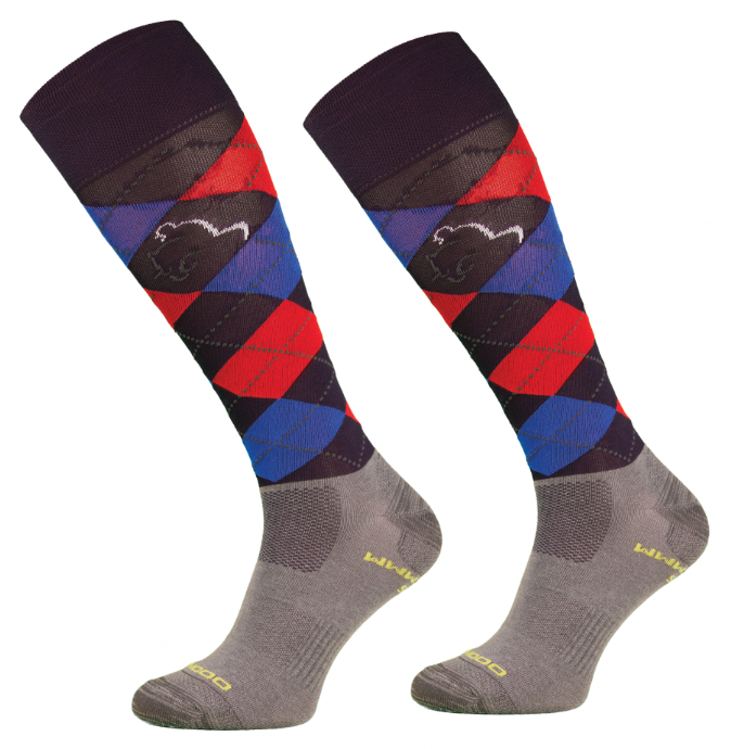 COMODO Podkolanówki techniczne Karo granat-czerwień-niebieski
