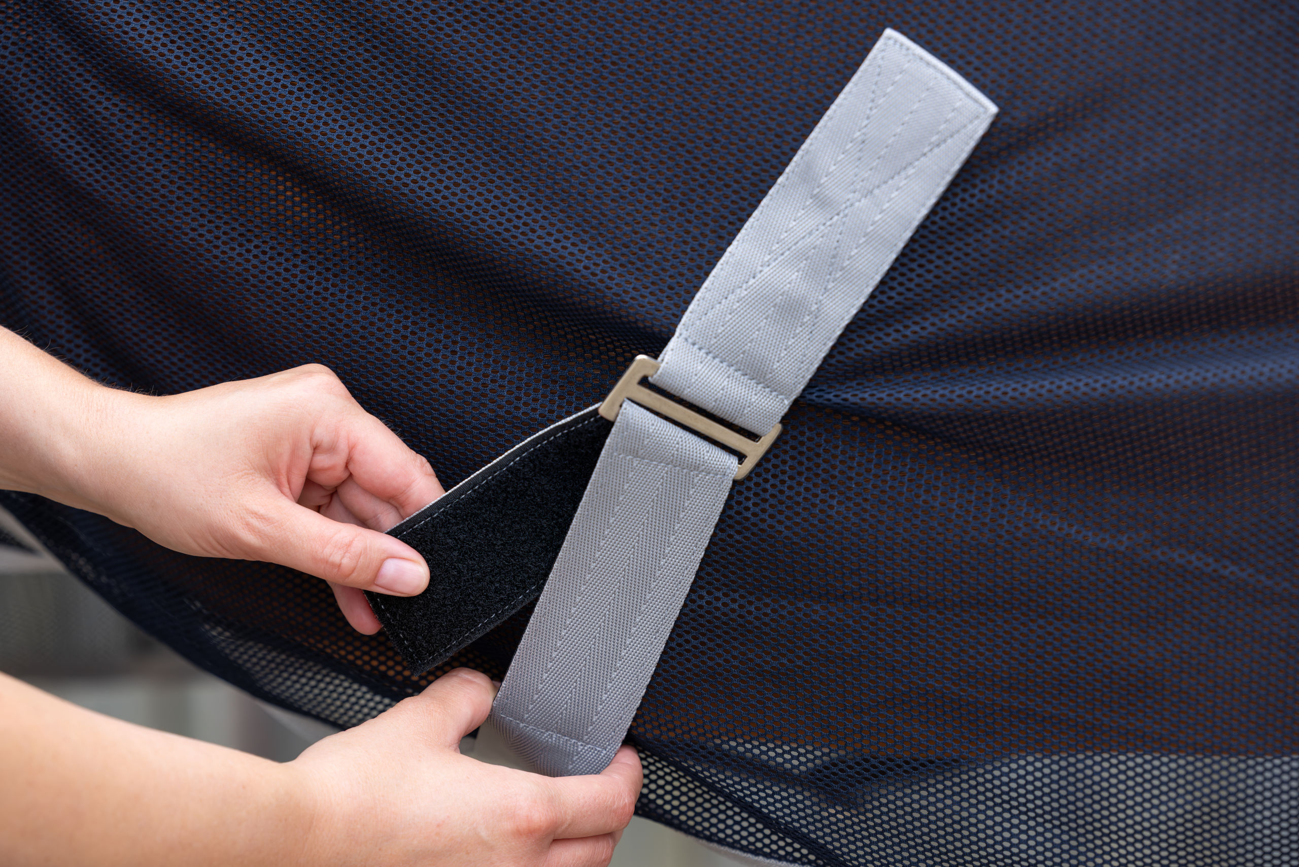 Derka przeciw owadom RugBe marki Covalliero została zaprojektowana z myślą o ochronie konia przed insektami w okresach zwiększonej aktywności much i owadów gryzących. Lekka struktura materiału umożliwia swobodny przepływ powietrza, co ogranicza przegrzewanie i wspiera szybkie odprowadzanie wilgoci.