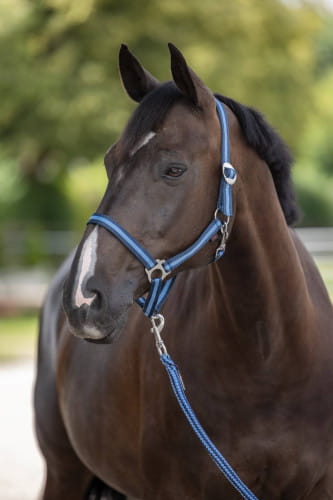 COVALLIERO Hippo to funkcjonalny kantar w przystępnej cenie, doskonały do codziennego użytku. Wyposażony w bezstopniową regulację paska potylicznego, umożliwia precyzyjne dopasowanie. Pasek podgardlany z wygodnym karabińczykiem ułatwia szybkie zakładanie i zdejmowanie. Nierdzewne okucia zapewniają trwałość i odporność na korozję.