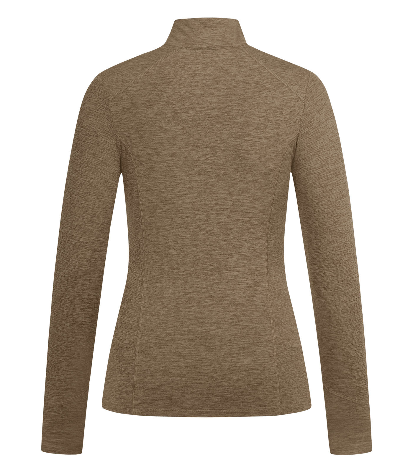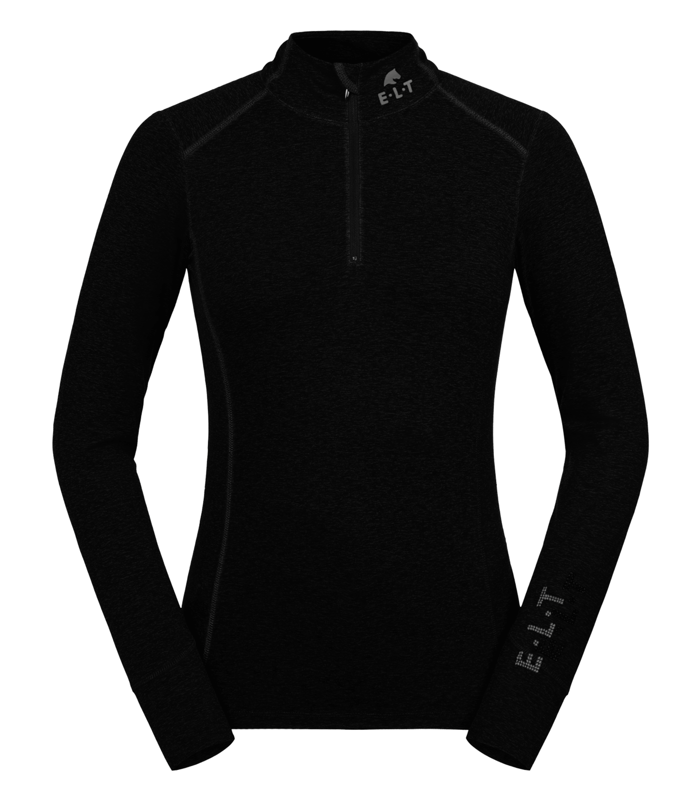 Zamek w górnej części, dyskretnie ukryty przy dekolcie, umożliwia regulację poziomu wentylacji w zależności od potrzeb. Wysoka stójka z nadrukiem logo dodaje nowoczesnego charakteru, a subtelne zdobienia w postaci dekoracyjnych kryształków na rękawie podkreślają sportowy, ale elegancki styl.