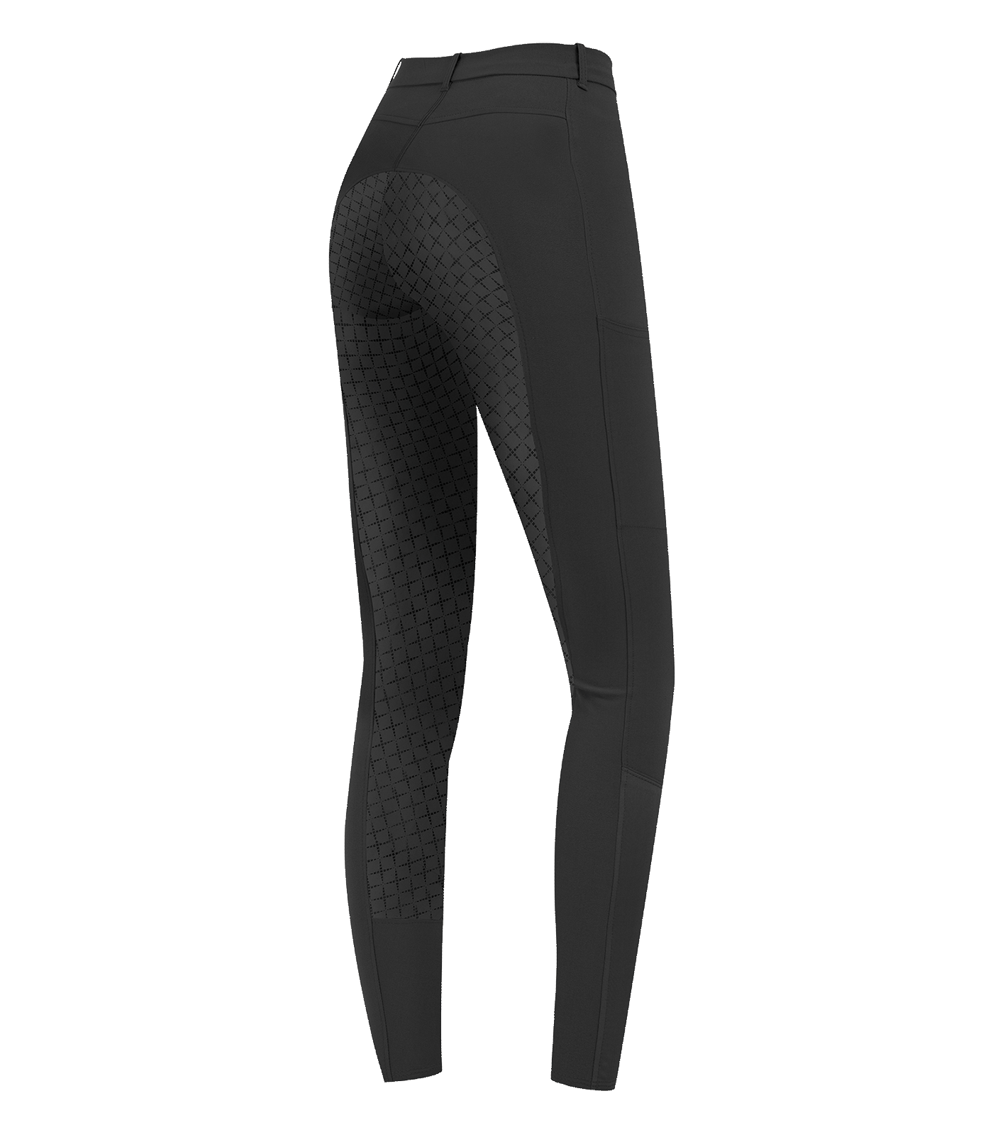 - Elastyczność: bi-elastyczny materiał dopasowuje się do sylwetki i ruchów jeźdźca.