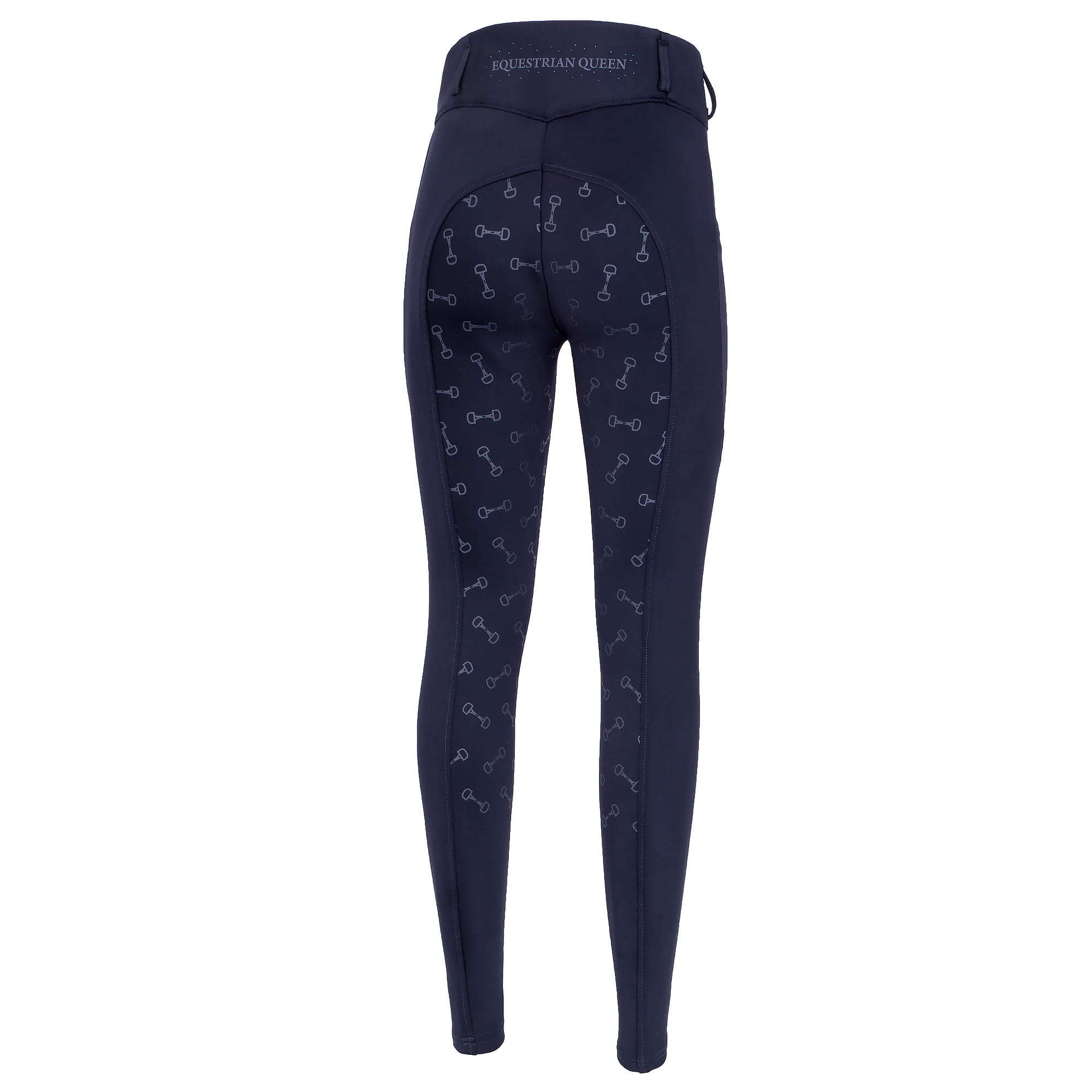 Bregginsy EQUESTRIAN QUEEN Salford 25SS to sportowe i eleganckie bregginsy, wykonane z innowacyjnej tkaniny technicznej, która idealnie dopasowuje się do ciała, podkreślając sylwetkę. Posiadają wysoki stan oraz specjalny krój, który ukrywa niedoskonałości, zapewniając wygodę i pewność siebie podczas aktywności. Zdobione delikatnym nadrukiem z tyłu oraz kryształkami, bregginsy łączą funkcjonalność z eleganckim wyglądem.