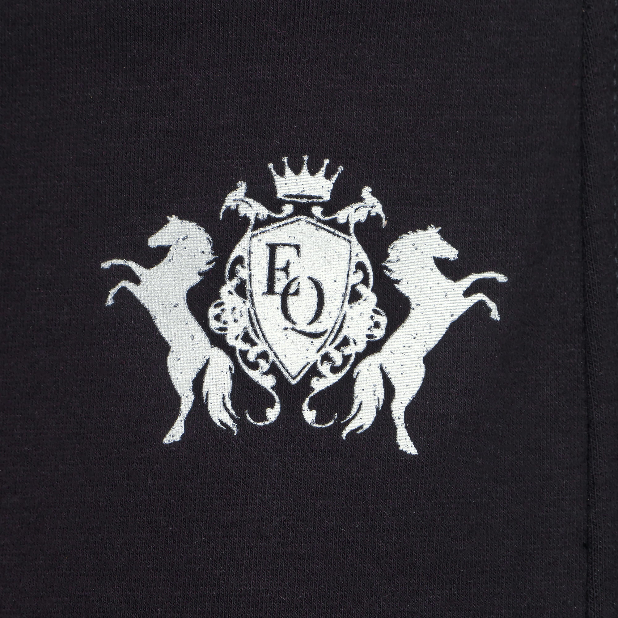 Wysoki stan zwiększa komfort noszenia i stabilizuje bryczesy nawet podczas intensywnego treningu. Brokatowe wykończenie nadaje subtelnego blasku, jednocześnie nie wpływając na funkcjonalność materiału. Ozdobny nadruk herbowy na nogawce oraz kieszenie z tyłu zapinane na napy dodają sportowego stylu, łącząc nowoczesny wygląd z wygodą.