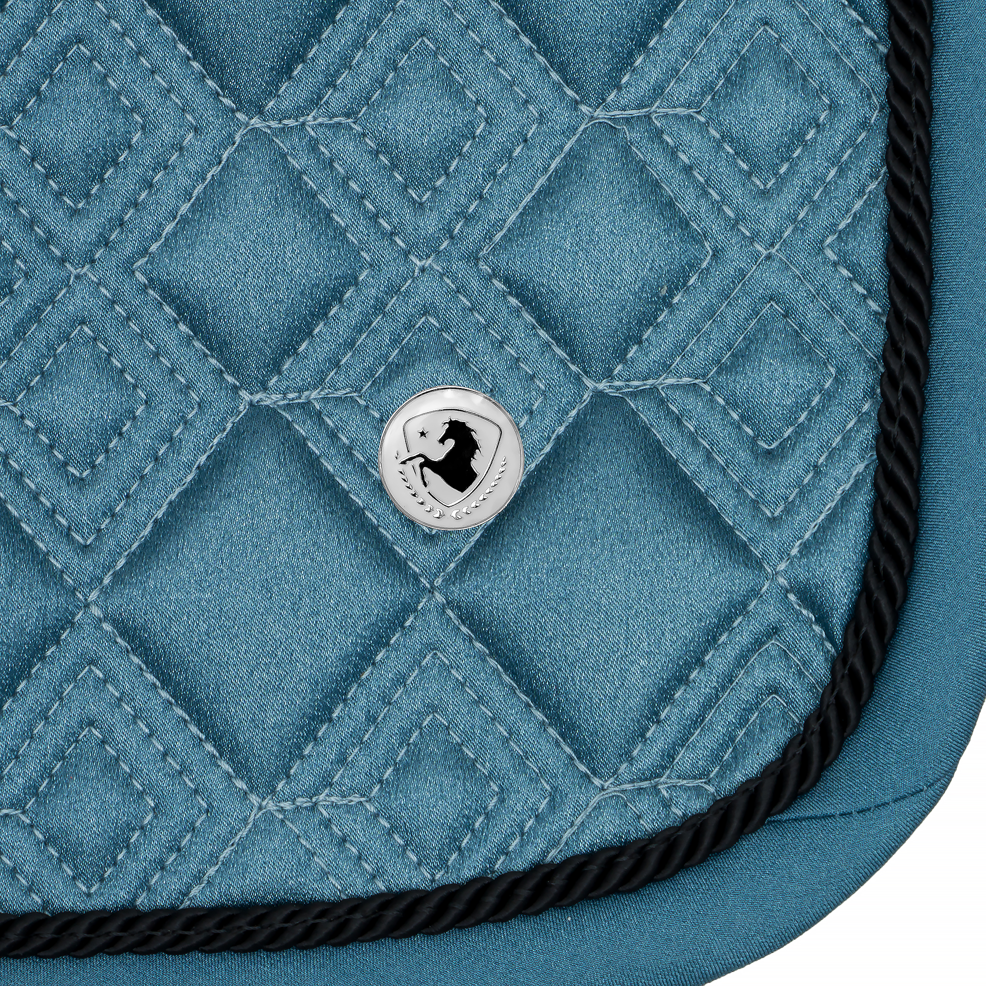Czaprak został zaprojektowany z myślą o wygodnym ułożeniu pod siodłem oraz estetycznym wyglądzie. Nowe pikowanie wzmacnia strukturę tkaniny i pomaga utrzymać równomierne rozłożenie wypełnienia. Starannie opracowany krój dobrze dopasowuje się do linii grzbietu konia, co wspiera stabilne położenie podczas jazdy.