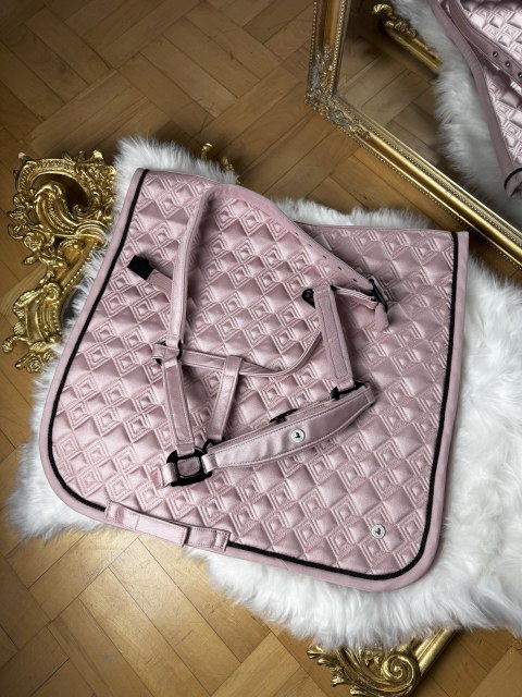 Model wyróżnia się ozdobnym materiałem o lśniącej powierzchni, który zmienia wygląd w zależności od kąta padania światła. Dzięki temu całość prezentuje się efektownie, zachowując elegancki charakter. Dodatkowym elementem dekoracyjnym jest subtelny pin z logo.