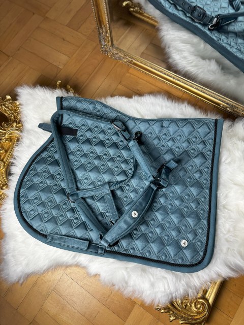 Kantar wyposażono w czarne, matowe okucia wykonane z trwałego metalu. Elementy te cechują się wysoką odpornością na codzienne obciążenia, częste zapinanie oraz użytkowanie w stajni i podczas transportu. Solidne zapięcia wspierają bezpieczeństwo i wygodną obsługę.
