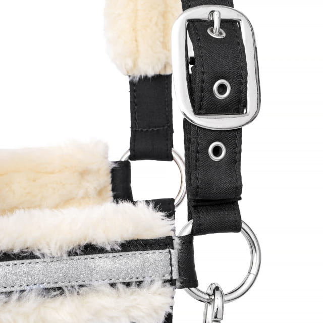 Kantar Equestrian Queen Riga to eleganckie, komfortowe i trwałe rozwiązanie dla koni. Dzięki wytrzymałej taśmie, sztucznemu futerku i eleganckim detalom, jest nie tylko funkcjonalny, ale także stylowy. Szeroka regulacja i solidne okucia zapewniają idealne dopasowanie oraz niezawodność przez długi czas. Idealny do codziennego użytkowania, a także na zawody.