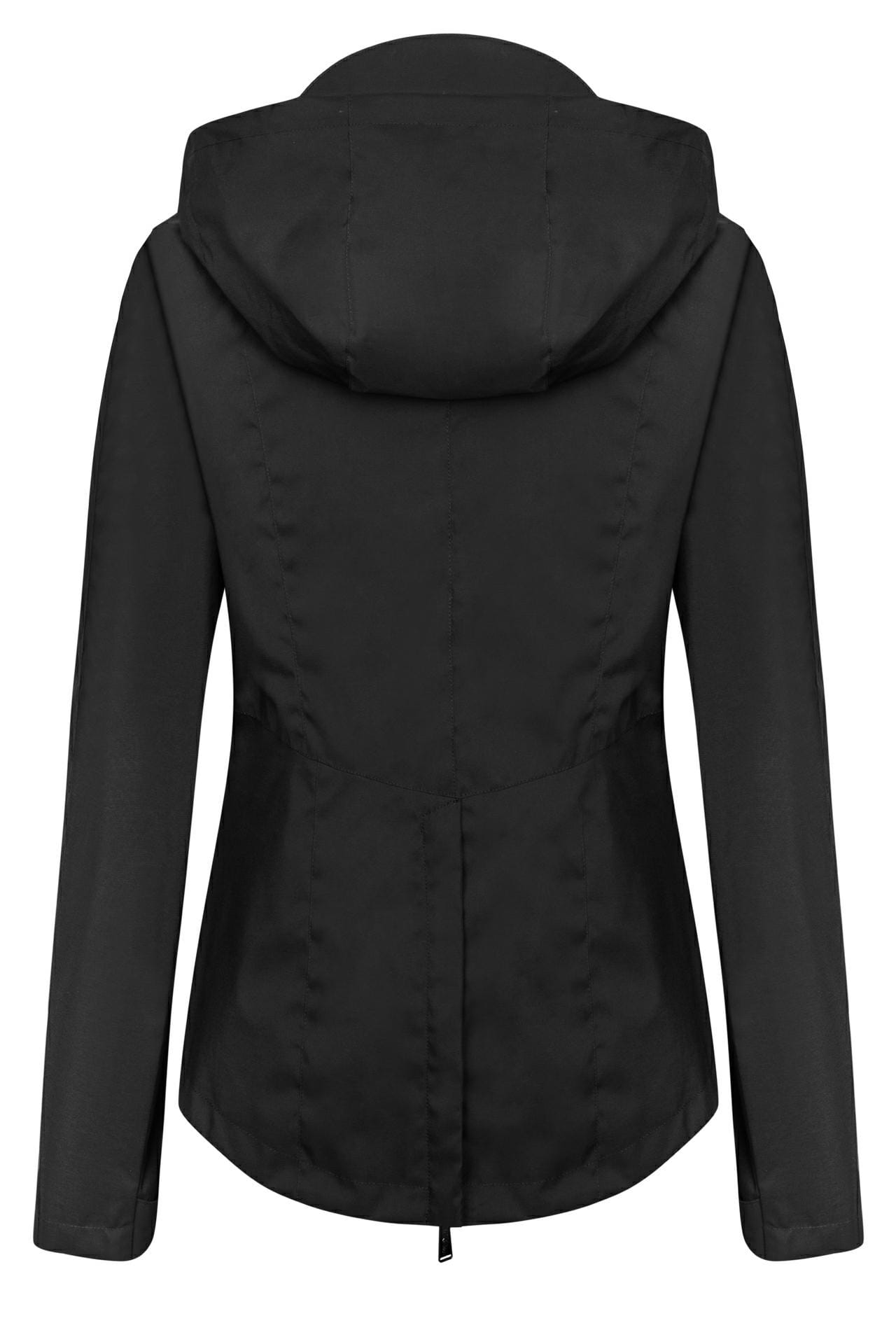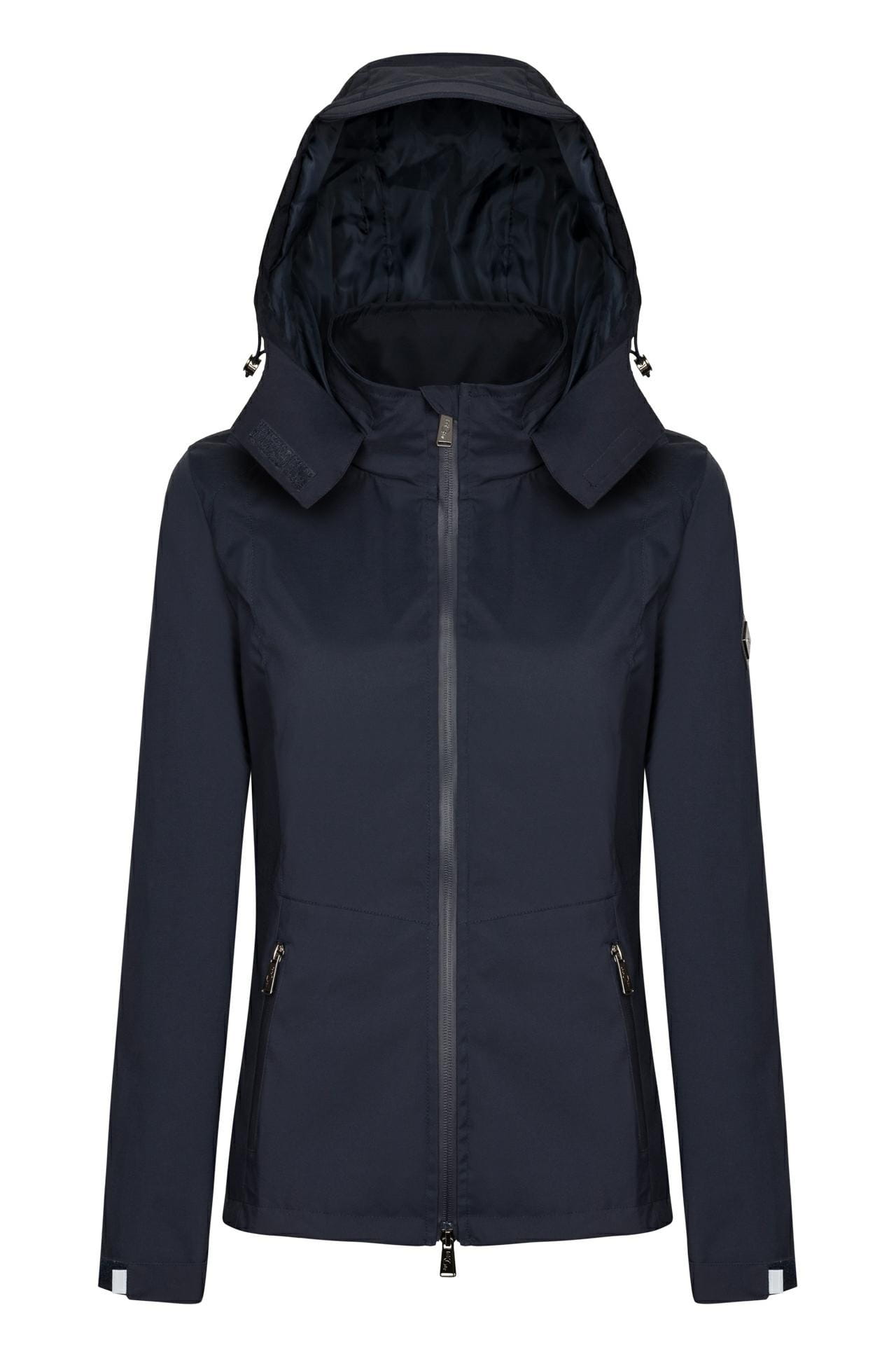 Zamek z tyłu umożliwia wygodną jazdę konną, a podszewka z siatki zapewnia przewiewność i komfort termiczny. Wewnątrz znajduje się pojemna kieszeń, idealna na telefon lub drobne przedmioty. Kaptur z regulacją i sztywnym daszkiem został sprytnie ukryty w stójce, dzięki czemu kurtka zachowuje schludny wygląd. Dodatkowo wodoodporne zamki i subtelne metalowe logo na rękawie podkreślają dbałość o każdy detal.