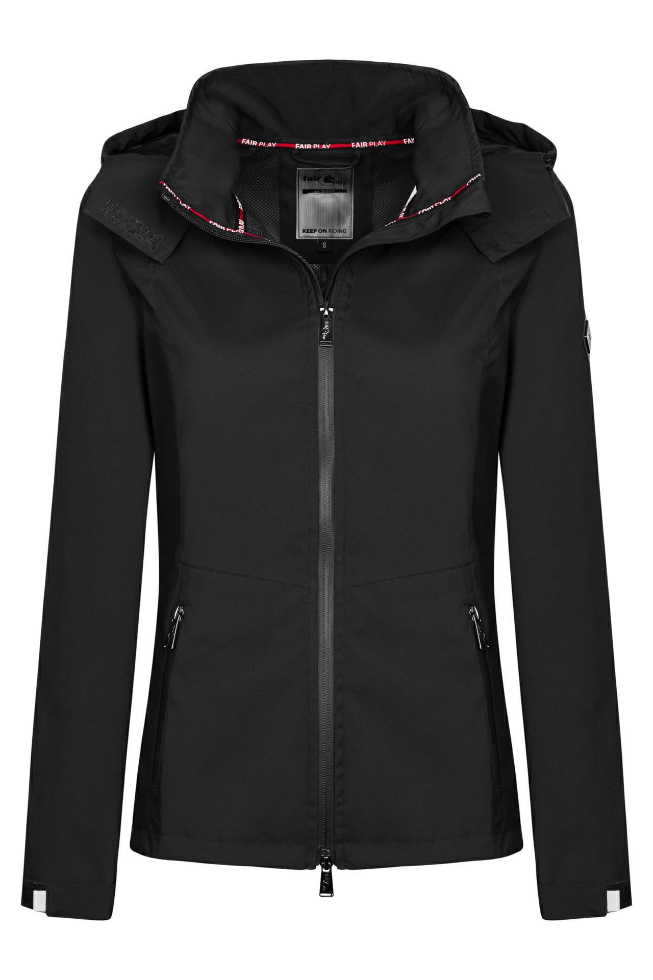 Kurtka Fair Play Jonelle to połączenie nowoczesnej technologii z eleganckim, kobiecym krojem. Została zaprojektowana z myślą o osobach, które spędzają czas w siodle niezależnie od pogody. Lekki materiał o wodoodporności 3000 mm i oddychalności 3000 mm skutecznie chroni przed deszczem, a jednocześnie pozwala skórze swobodnie oddychać. Wszystkie szwy są szczelnie klejone, co zapobiega przedostawaniu się wilgoci nawet podczas intensywnych opadów.