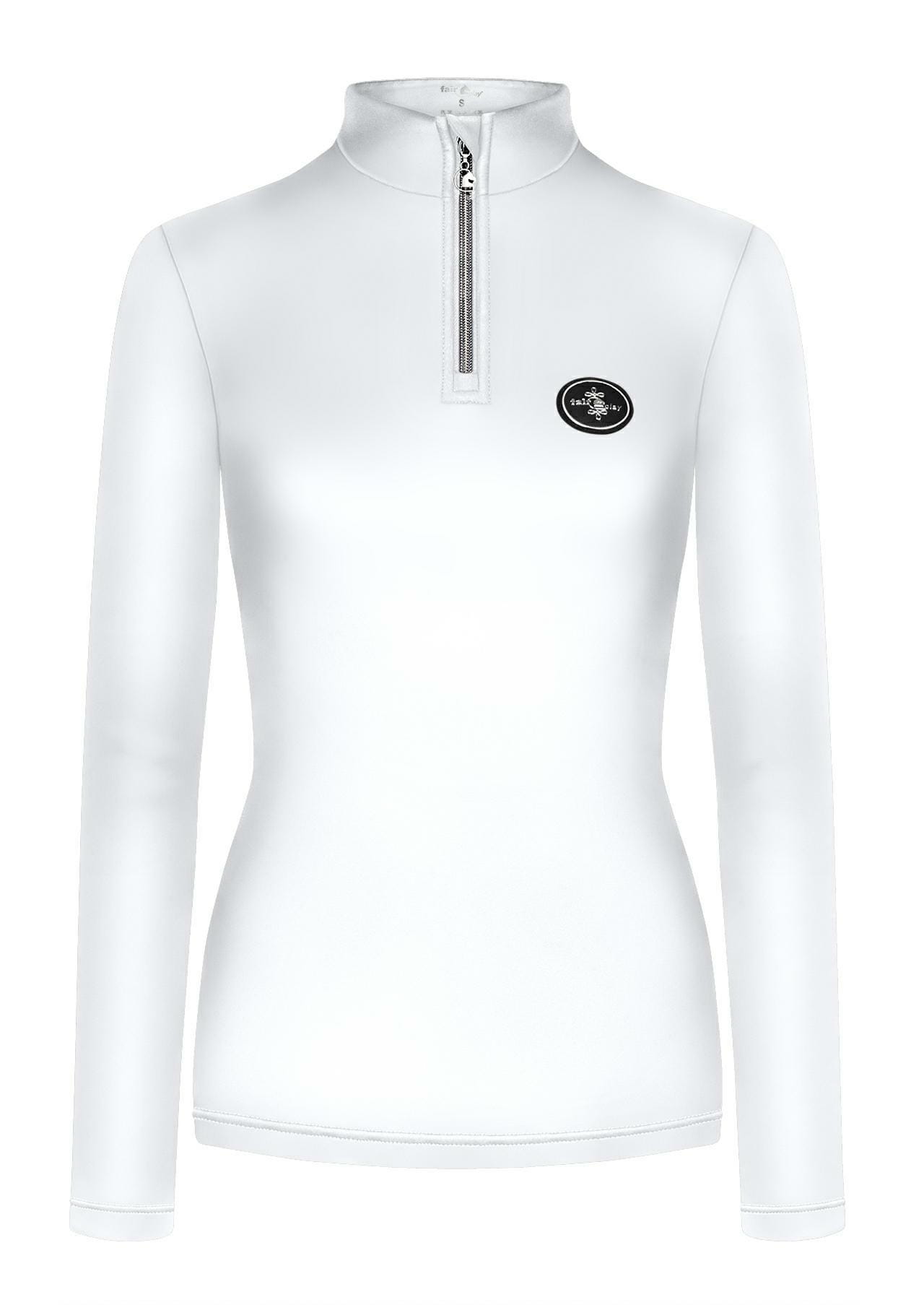 FAIR PLAY Półgolf konkursowy MIKA damski został uszyty z oddychającej, elastycznej i miękkiej dzianiny welurowej, która łatwo dopasowuje się do ruchu. Krój jest dopasowany, a precyzyjnie skrojone panele boczne prowadzą linię tułowia, porządkując ułożenie dzianiny i podkreślając sylwetkę. Zamek błyskawiczny umieszczony z przodu ułatwia szybkie zakładanie oraz regulację przewiewu. Na dole rękawów znajdują się otwory na kciuki. Front zdobi naszywka z logo Fair Play.