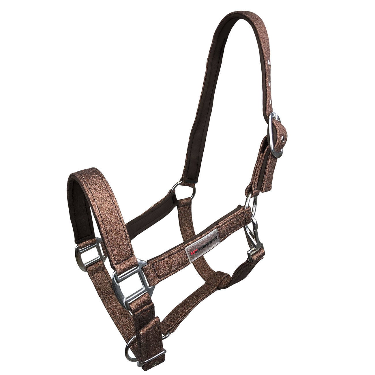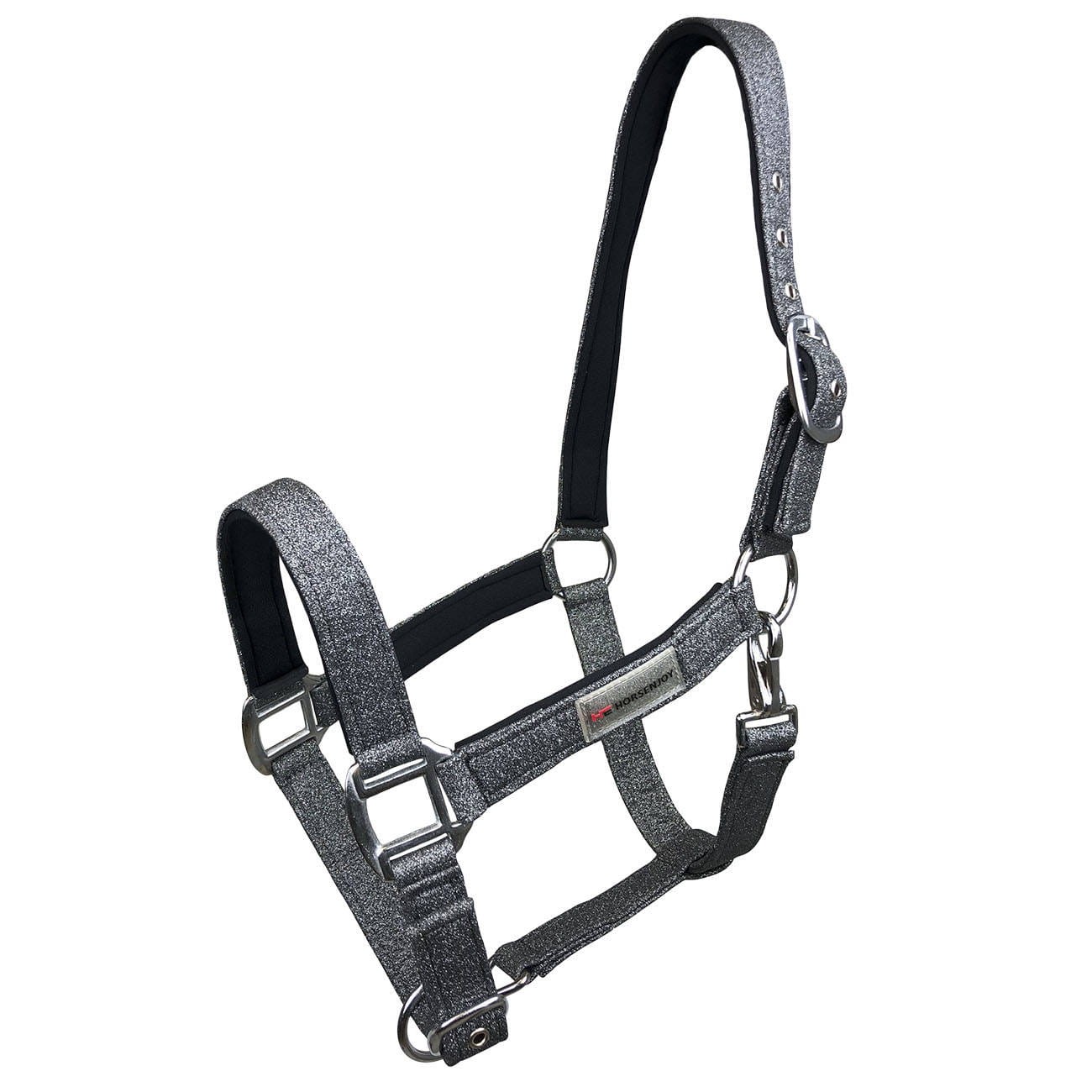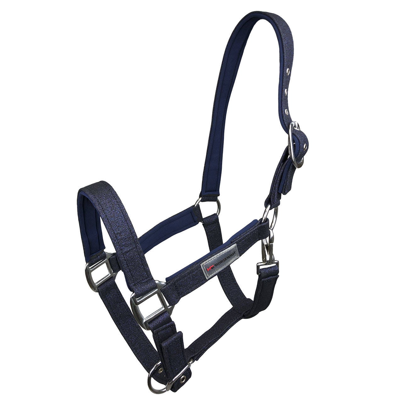 Kantar Horsenjoy Marvel to wyjątkowy model, który łączy elegancję z komfortem. Jego blask dzięki delikatnej, brokatowej taśmie sprawia, że prezentuje się niezwykle stylowo, jednocześnie zapewniając wygodę dla konia dzięki miękkiemu neoprenowemu podszyciu.