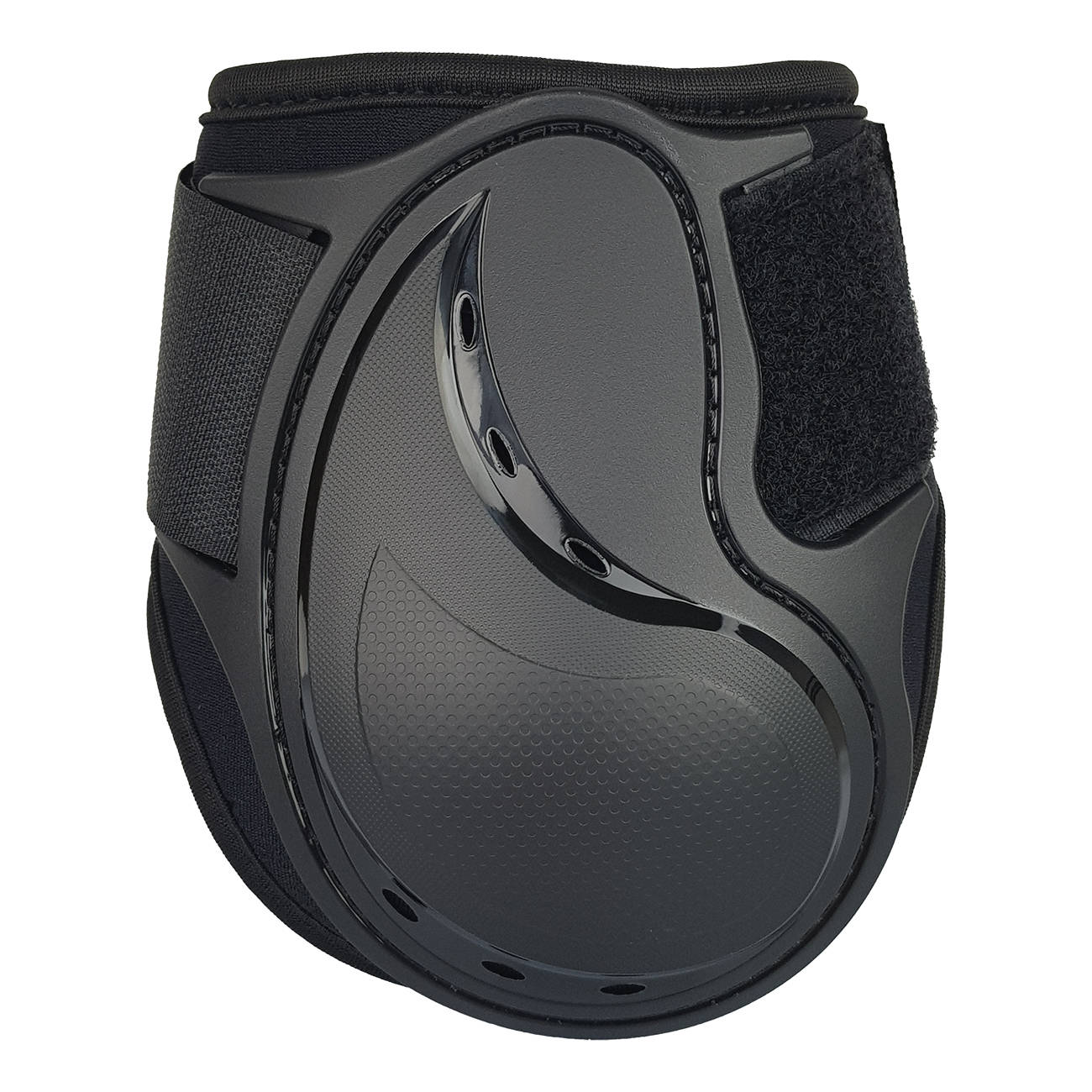 Tylne ochraniacze skokowe Pro Air to doskonały wybór na treningi i zawody. Wykonane z perforowanego neoprenu, który zapewnia oddychalność i komfort, gwarantują skuteczną ochronę nóg konia podczas intensywnej pracy. Otwory w skorupie wspomagają cyrkulację powietrza, zapobiegając przegrzaniu.