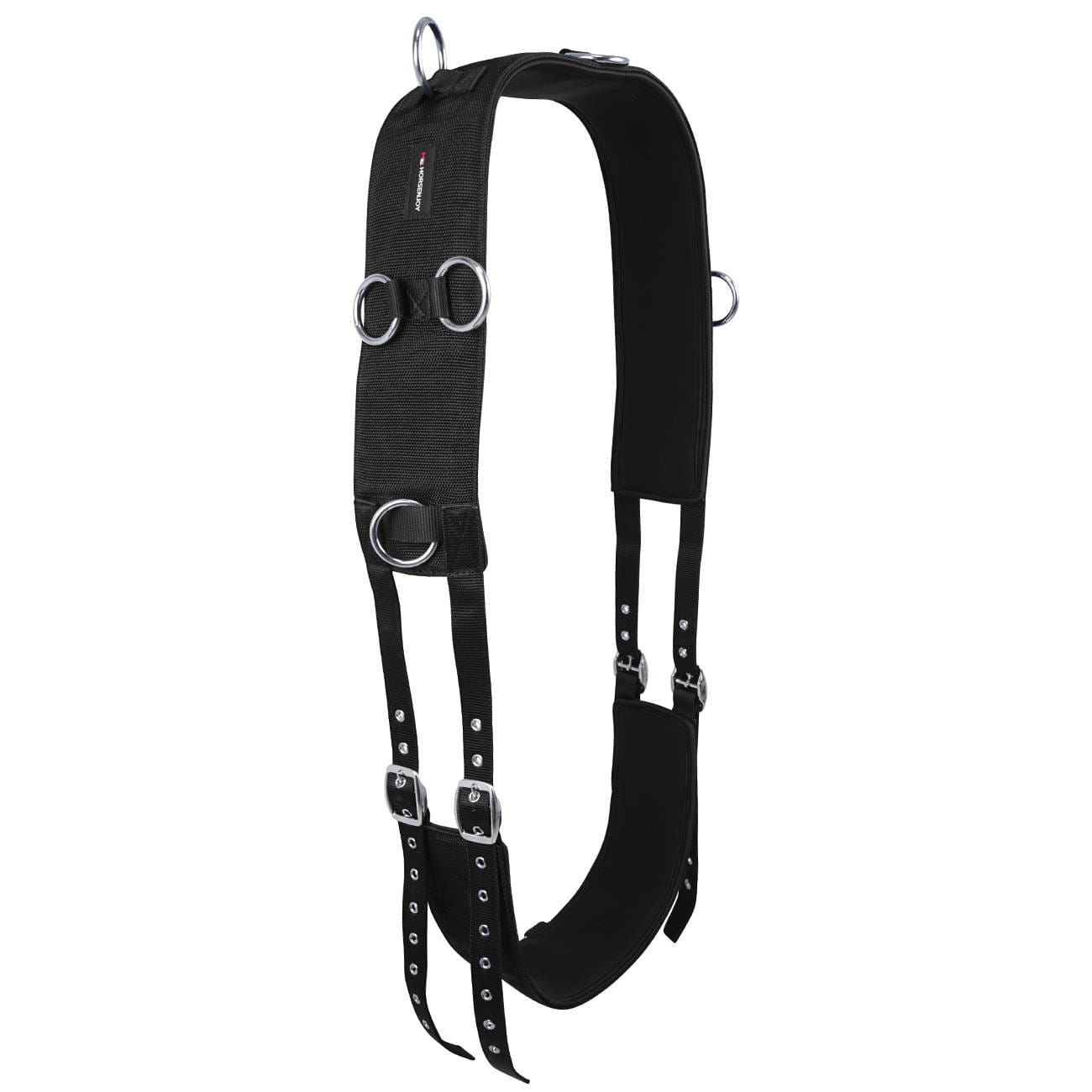 HORSENJOY Pas do lonżowania Equi-Memo Full to profesjonalne narzędzie, które zapewnia wygodę i efektywność treningów. Dzięki regulacji, piance typu memo i licznym pierścieniom, pas jest idealnym wyborem dla jeźdźców poszukujących wszechstronnego i komfortowego akcesorium do lonżowania.