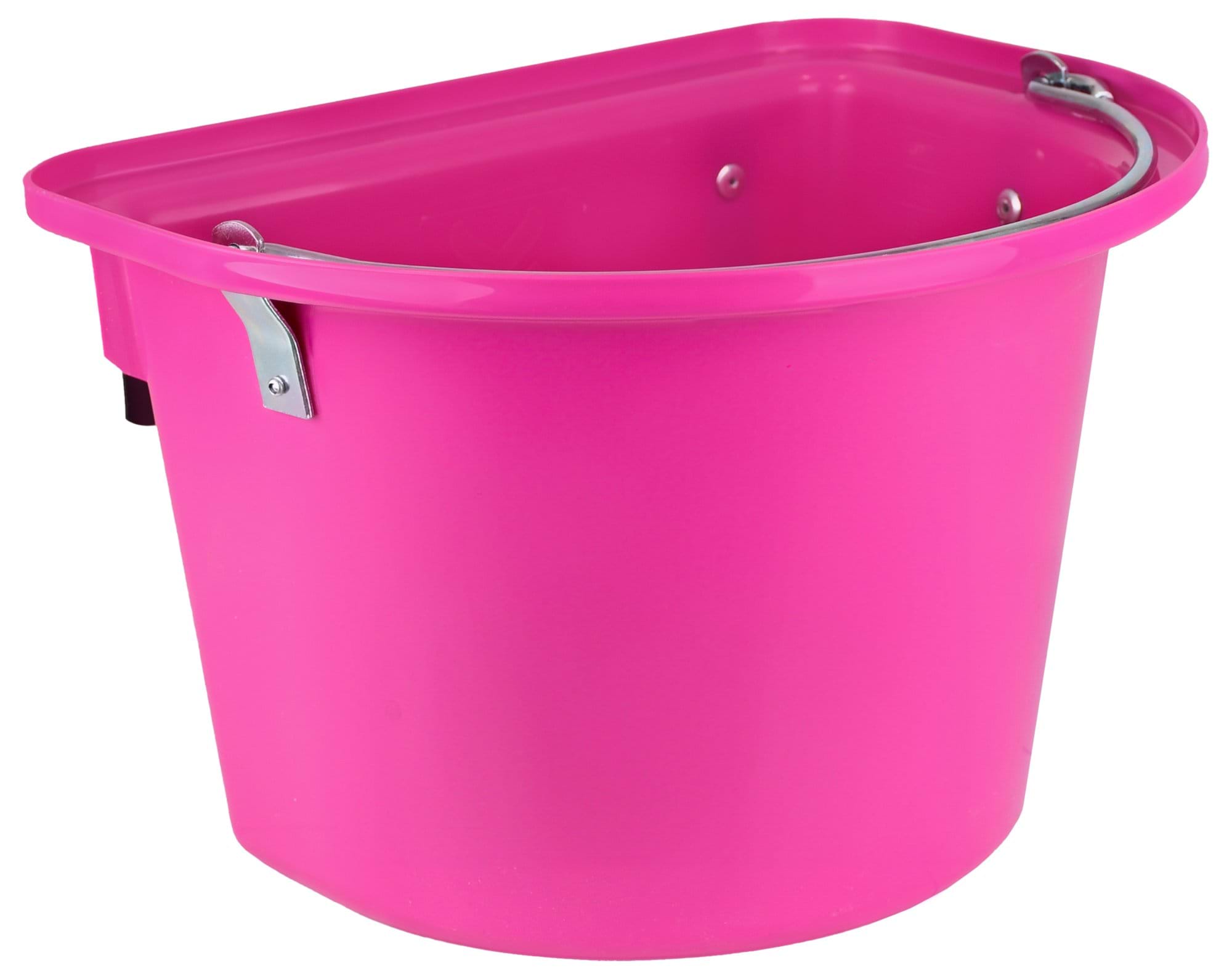 Wyposażony w solidny metalowy zaczep, żłób można łatwo zawiesić w boksie, na padoku lub przy przyczepie. Uchwyt w formie metalowego pałąka ułatwia przenoszenie oraz opróżnianie naczynia, nawet przy pełnym załadunku. Dzięki widocznej podziałce możliwe jest precyzyjne odmierzanie ilości podawanej paszy, co wspiera kontrolę diety i dawkowania.