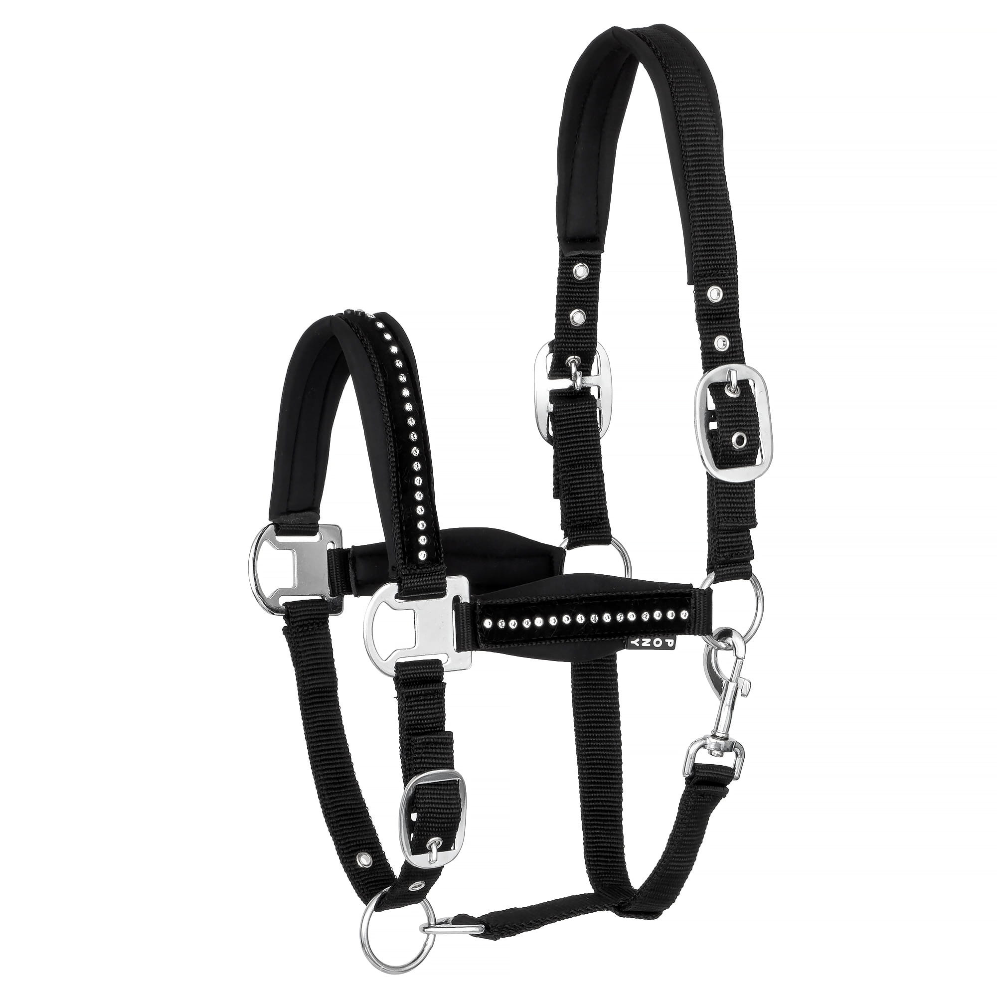 START Kantar PremiumDiamonds to czarny kantar z dekoracyjną linią kryształków, przeznaczony do codziennego prowadzenia i wiązania konia. Miękkie podszycie w górnych częściach zmniejsza nacisk na głowę, a metalowe okucia zapewniają pewny punkt podpięcia uwiązu. Regulowane paski pomagają dopasować go do budowy głowy i utrzymać stabilne ułożenie podczas ruchu.