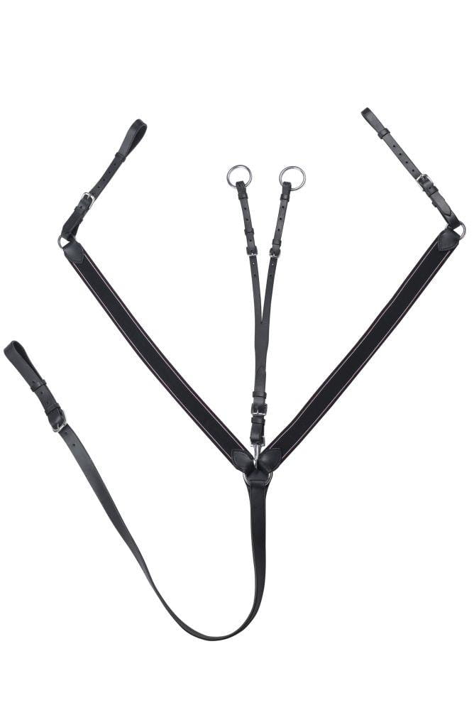 Napierśnik START Elastic to idealne połączenie wytrzymałości, komfortu i funkcjonalności. Dzięki szerokim, elastycznym pasom, regulowanemu wytokowi oraz solidnym metalowym elementom, napierśnik zapewnia stabilność i wygodę koniowi, jednocześnie gwarantując długotrwałe użytkowanie. Dostępny w klasycznych kolorach – czarnym i brązowym – stanowi doskonały wybór zarówno do codziennego użytku, jak i na zawody.