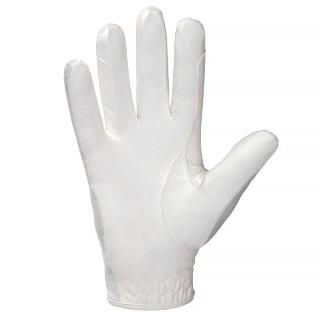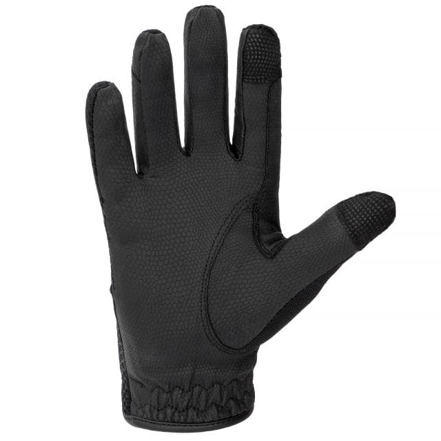 Wewnętrzna strona rękawiczek wykonana z materiału zapewniającego pewny chwyt wodzy i komfort użytkowania