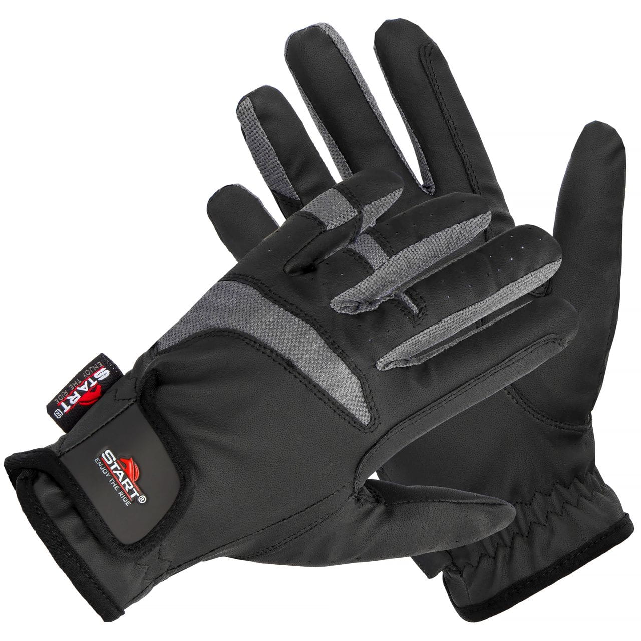 Rękawiczki Muna marki START to doskonały wybór dla osób poszukujących wysokiej jakości i komfortu w jeździeckim wyposażeniu. Wykonane z wytrzymałej, antypoślizgowej skóry syntetycznej, zapewniają pewny chwyt wodzy, a ich dodatkowe wstawki z elastycznej siateczki umożliwiają lepsze dopasowanie do dłoni oraz zwiększoną przewiewność. Dziurkowanie materiału na palcach jeszcze bardziej poprawia oddychalność, co sprawia, że rękawiczki są wygodne nawet w cieplejsze dni. Zamek na rzep z logo firmy START dodaje praktyczności i elegancji. Model dostępny w trzech kolorach: czarnym, czarno-szarym oraz szaro-czarnym, dzięki czemu można je łatwo dopasować do różnych stylów jeździeckich.