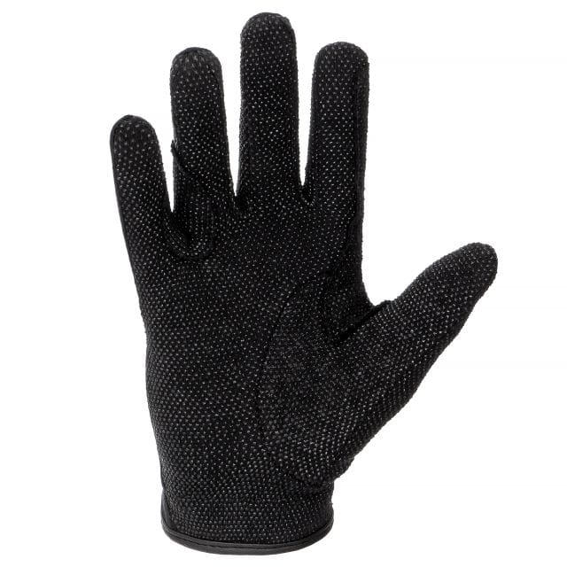 Wewnętrzna część rękawiczek pokryta jest silikonowym wzorem, co zapewnia pewne trzymanie wodzy i poprawia kontrolę nad koniem