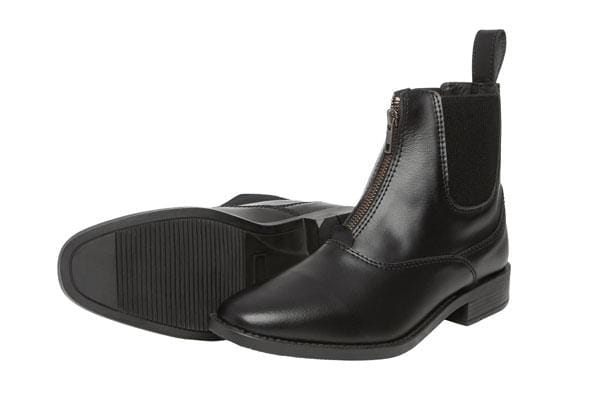 Sztyblety te posiadają zamek błyskawiczny z przodu, który znacznie ułatwia zakładanie i zdejmowanie butów, co jest szczególnie wygodne dla osób ceniących praktyczne rozwiązania. Dodatkowo, antypoślizgowa podeszwa gwarantuje bezpieczeństwo i stabilność na różnorodnych nawierzchniach, zarówno podczas jazdy, jak i chodzenia po stajni.