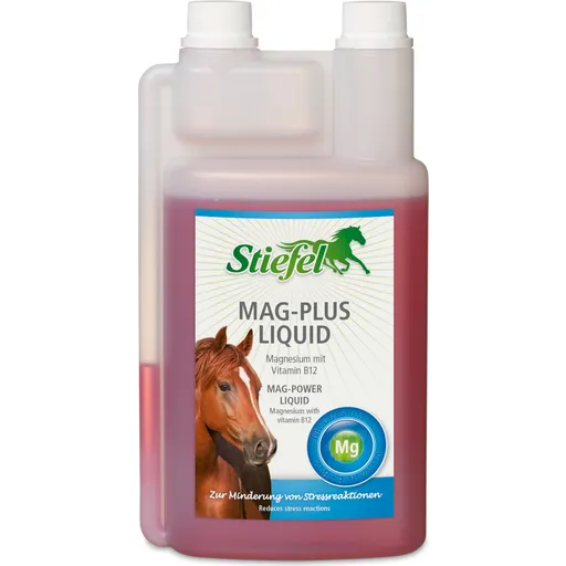 Stiefel Mag-Plus Liquid to suplement diety w płynie, który łączy magnez, tryptofan i witaminę B12, wspomagając zdrowie koni poprzez redukcję reakcji na stres oraz zwiększenie odporności. To idealny produkt dla koni narażonych na stres, nerwowych lub mających problem z koncentracją. Regularne stosowanie może poprawić ogólną kondycję, koncentrację oraz zredukować objawy niepokoju.