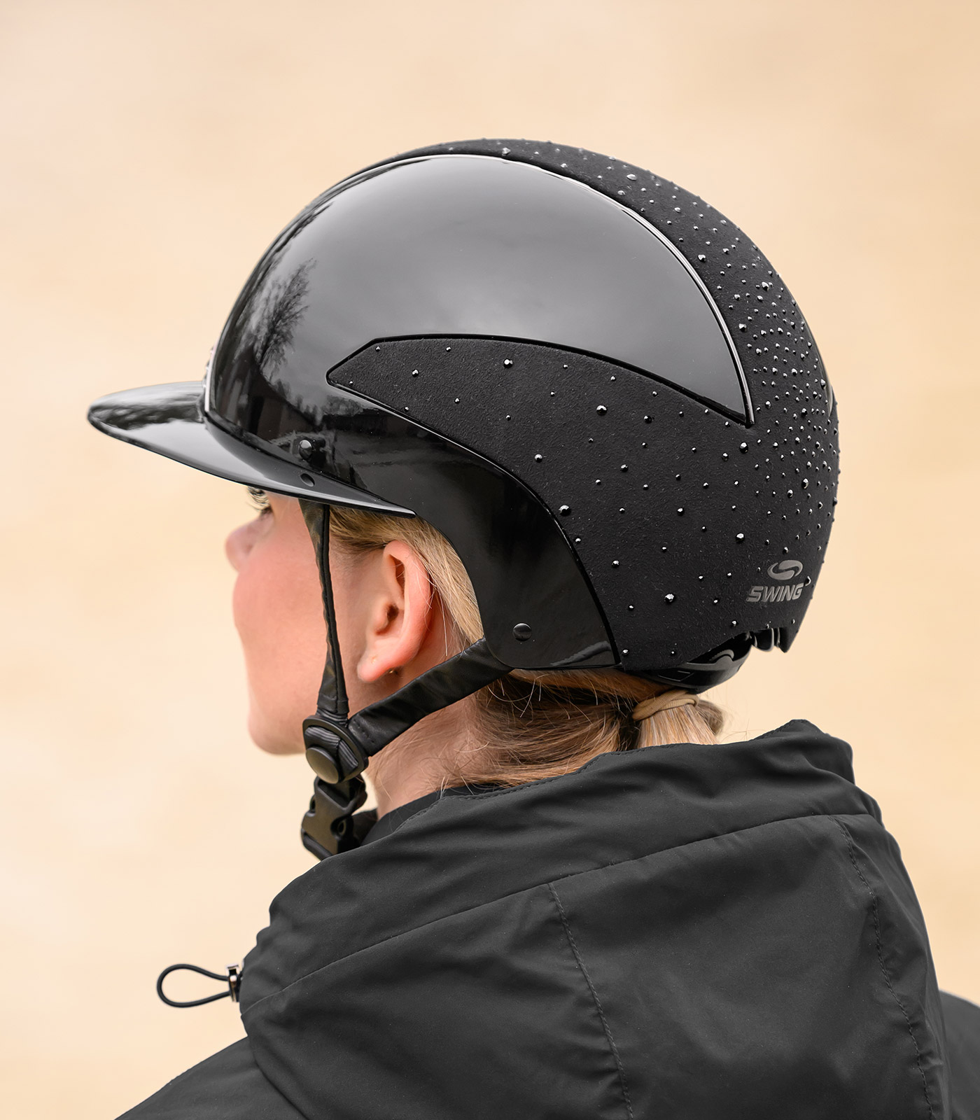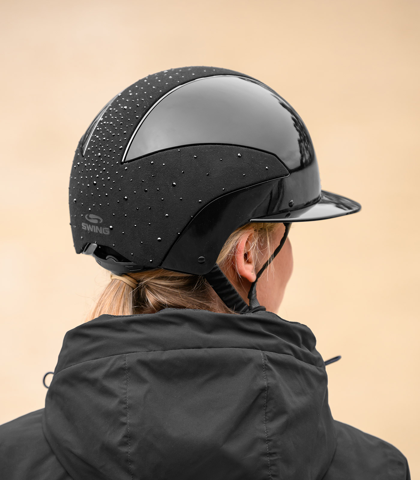 Kask jeździecki SWING H24 Lady Spark to model zaprojektowany z myślą o wysokim poziomie ochrony oraz wygodzie użytkowania. Spełnia aktualną normę bezpieczeństwa EN 1384:2023, co potwierdza zgodność z obowiązującymi wymaganiami dla kasków jeździeckich.