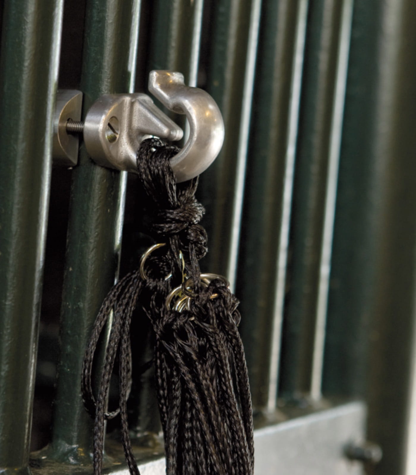 - Wszechstronne zastosowanie – Idealny do zawieszania siatek na siano oraz lizawek w różnych miejscach (stajnia, padok, przyczepa).
