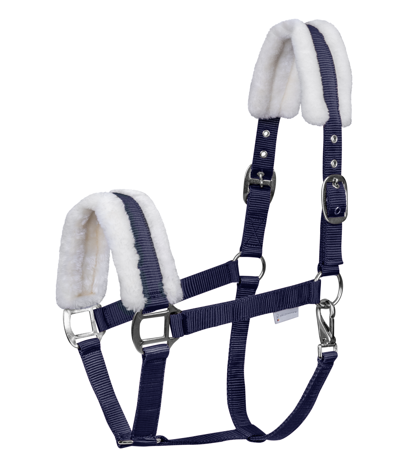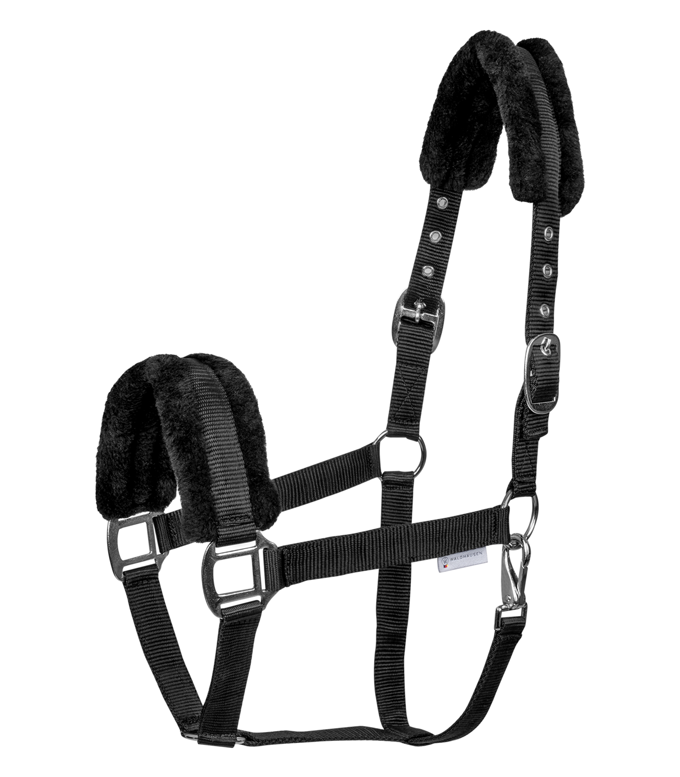 WALDHAUSEN First to miękko podszyty kantar, zapewniający maksymalny komfort dla konia. Wyściełanie z syntetycznego futra na nachrapniku i potylicy chroni skórę przed otarciami. Regulacja po obu stronach paska potylicznego pozwala na idealne dopasowanie, a solidna konstrukcja gwarantuje trwałość.