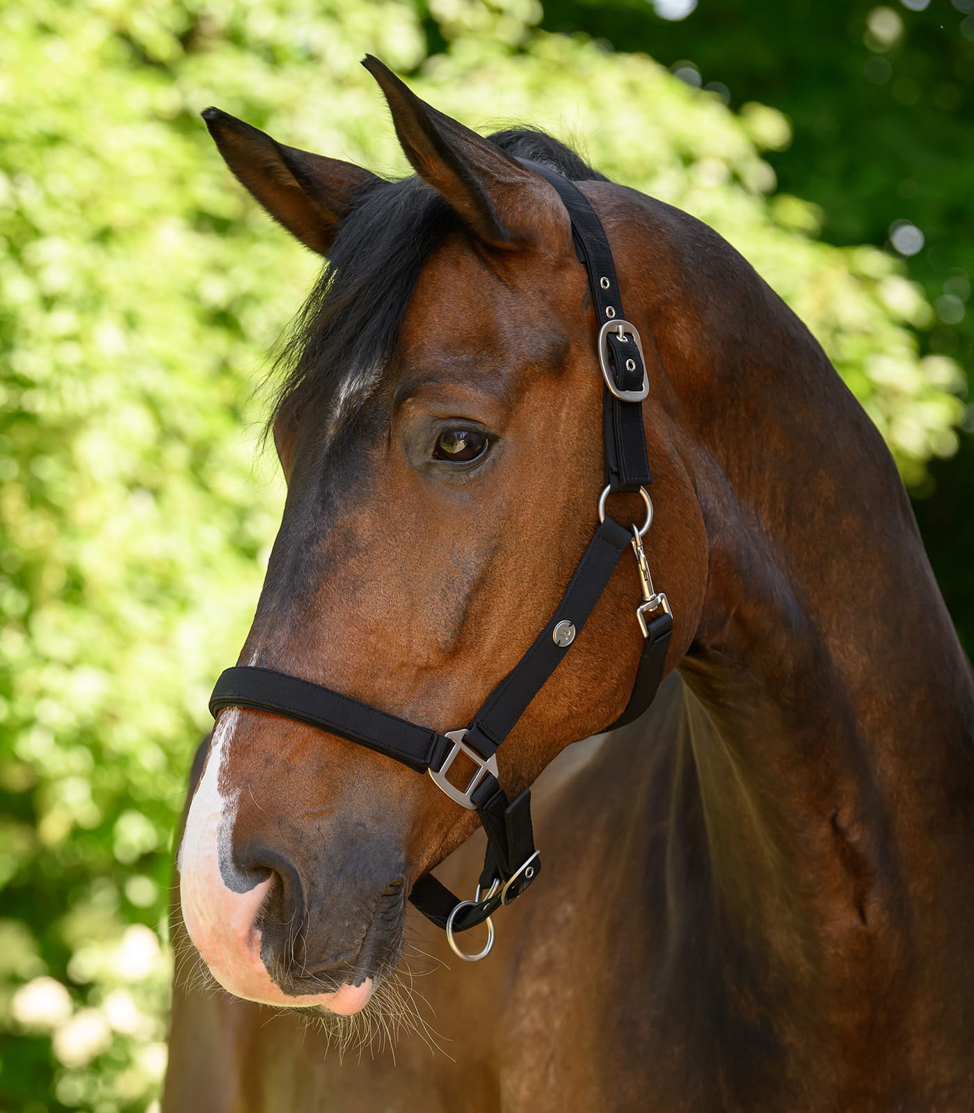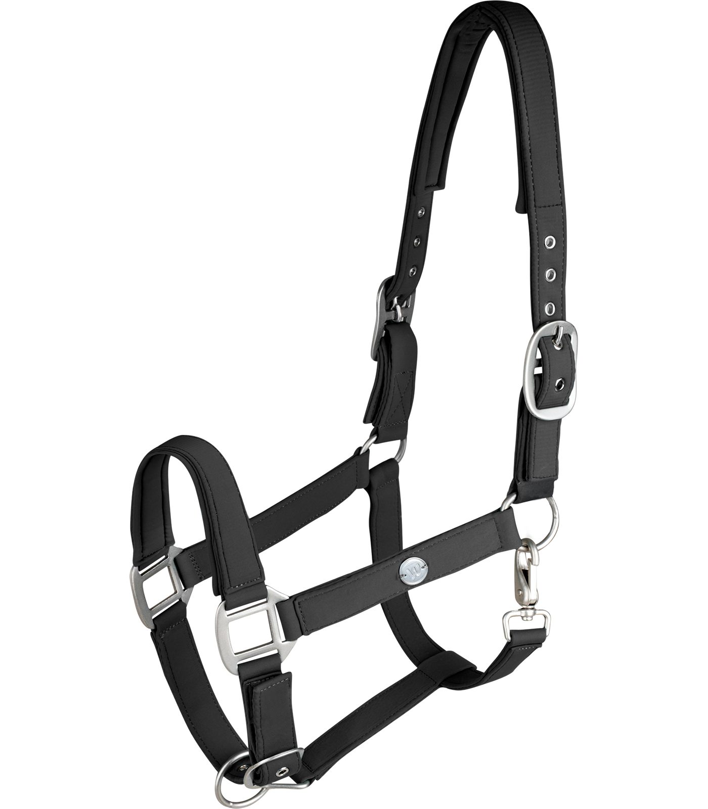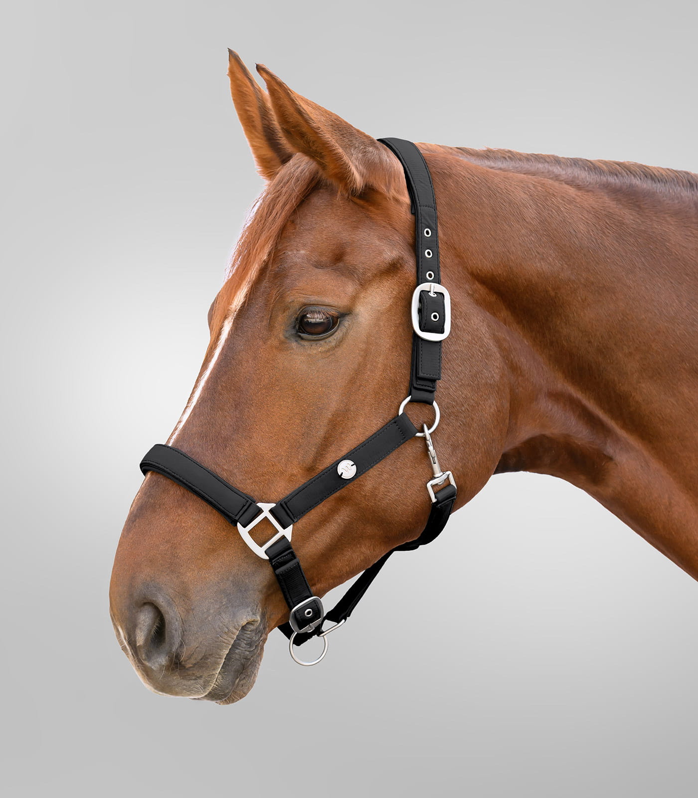 Podszycia w części potylicznej, na nachrapniku i paskach policzkowych chronią sierść przed otarciami. Takie wykończenie poprawia kontakt i zmniejsza tarcie w miejscach najbardziej narażonych na nacisk. Regulacja po obu stronach nagłówka umożliwia precyzyjne dopasowanie do różnych kształtów głowy. Dzięki temu kantar utrzymuje stabilne ułożenie bez nadmiernego napięcia.