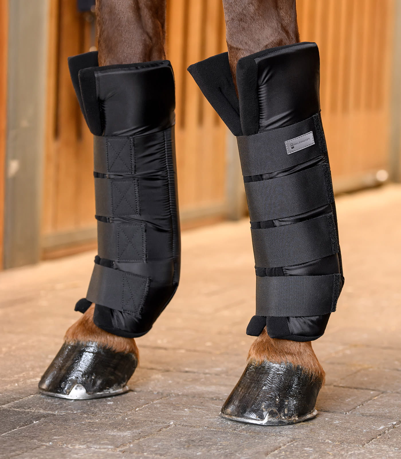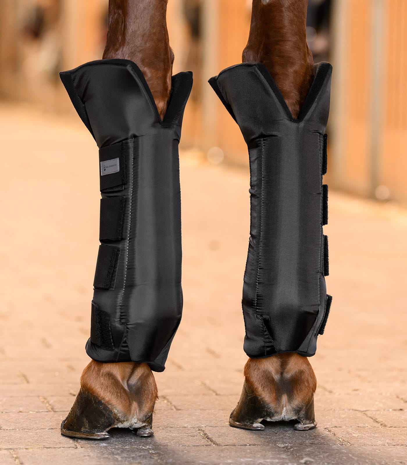 Ochraniacze stajenne z podparciem stawów zostały opracowane z myślą o koniach, które wymagają szerszego zakresu ochrony w obrębie stawu skokowego i pęcinowego. Ergonomiczne wyprofilowanie umożliwia swobodne zginanie kończyny nawet podczas leżenia, co zwiększa komfort i zmniejsza ryzyko ucisku. Materiały użyte na zewnątrz są wytrzymałe i odporne na odkształcenia, co zapobiega zapadaniu się ochraniaczy i pomaga utrzymać stabilny kształt przez cały czas użytkowania. Wodoodporna powierzchnia chroni przed wilgocią, a miękka wyściółka wewnętrzna zwiększa wygodę oraz ogranicza tarcie.