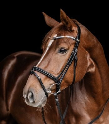 - Anatomiczna potylica – profilowana pod uszy dla lepszego komfortu konia.