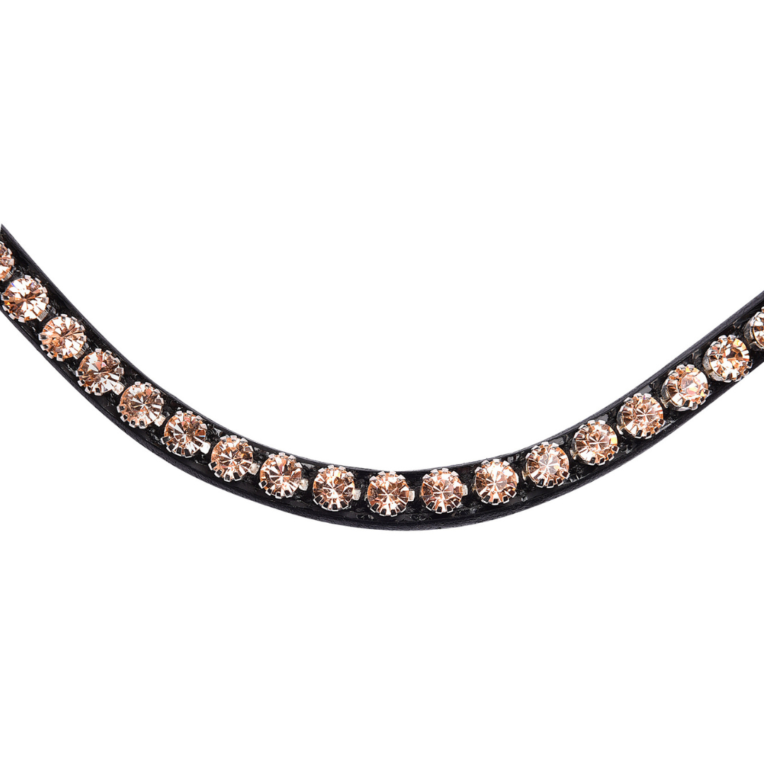 Ogłowie WALDHAUSEN X-Line Rose to elegancka propozycja, która łączy wysoką jakość wykonania z subtelną estetyką. Wykonane z najwyższej jakości skóry, ogłowie to wyróżnia się obustronnie regulowanym paskiem podgardla oraz angielskim nachrapnikiem kombinowanym, który posiada szerokie, miękkie podszycie, zapewniające wygodę i szykowny wygląd. Anatomicznie wyprofilowany naczółek ozdobiony jest różowymi kamyczkami, które dodają ogłowiu subtelnej elegancji. Sprzączki wykonane z nierdzewnej stali w odcieniu różowego złota podkreślają luksusowy charakter tego ogłowia. W zestawie znajdują się wodze parciane o szerokości 19 mm, które doskonale dopełniają całość.