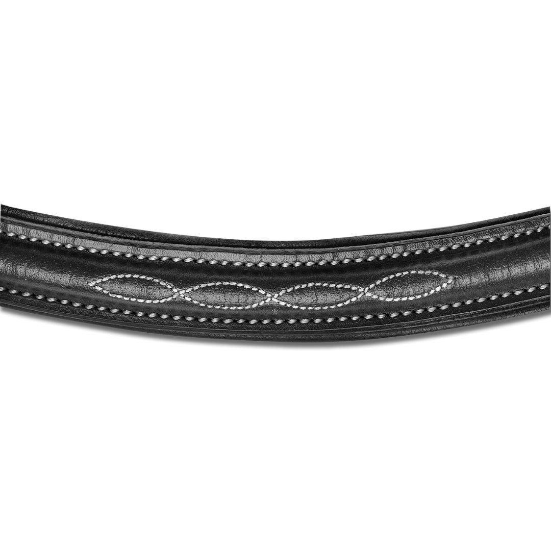 Ogłowie X-Line Santander to połączenie elegancji i funkcjonalności. Anatomicznie dopasowana część potyliczna zapewnia komfort, a miękkie podszycie na naczółku i nachrapniku chroni skórę konia przed otarciami. Ozdobne przeszycia w białym kolorze dodają ogłowiu subtelnej elegancji, sprawiając, że prezentuje się wyjątkowo stylowo. Stal nierdzewna w sprzączkach zapewnia trwałość, a wodze parciane o szerokości 19 mm gwarantują wygodę i kontrolę nad koniem.