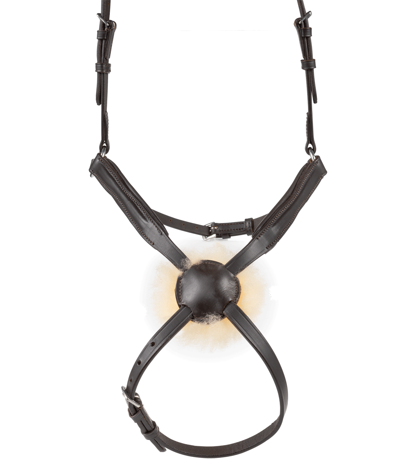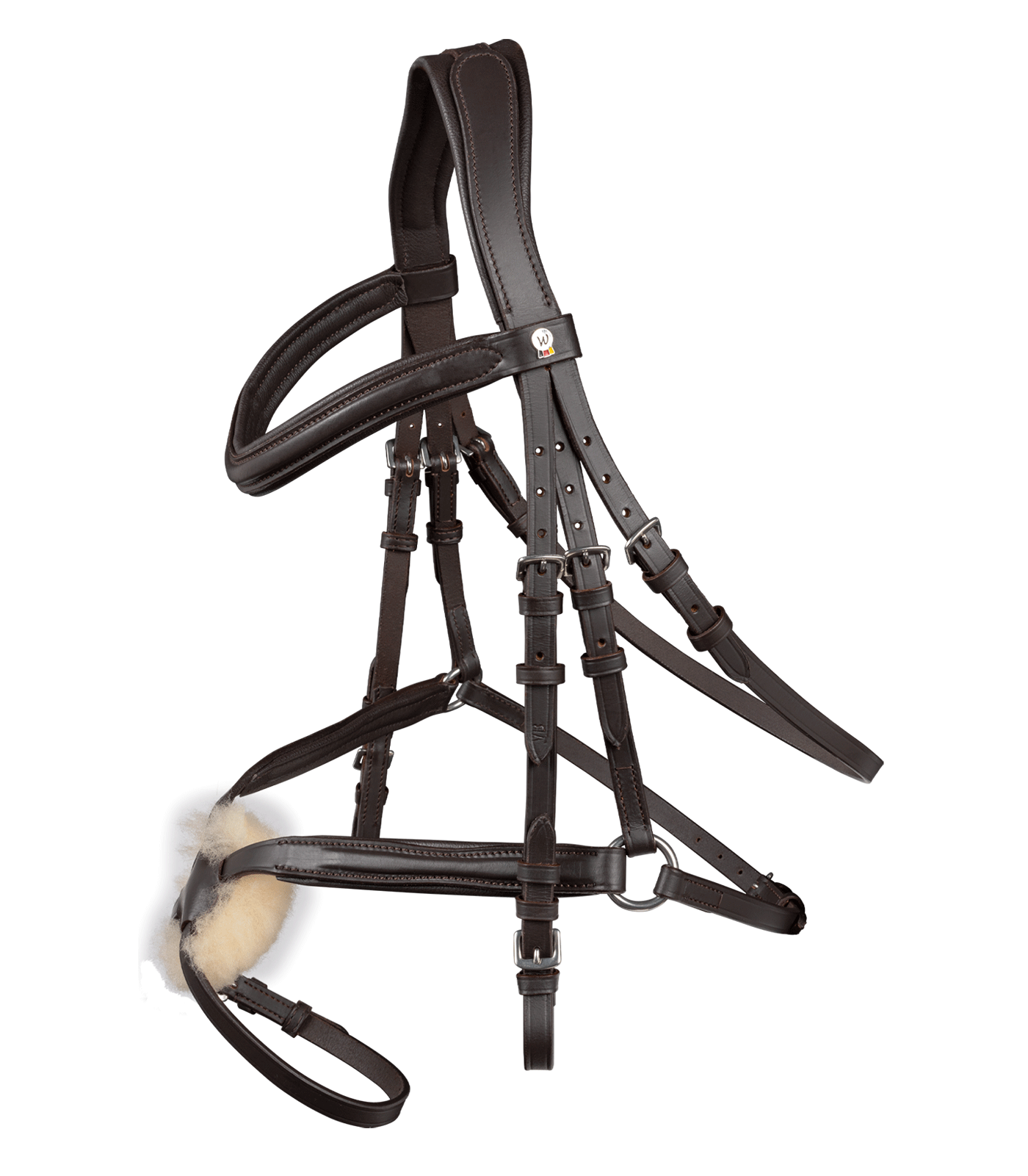 Nachrapnik, naczółek i potylica zostały miękko podszyte, co zwiększa komfort noszenia. Dodatkowo, rozeta nachrapnika jest wyściełana miękkim owczym futerkiem dla jeszcze lepszej ochrony. Okucia ze stali nierdzewnej zapewniają trwałość, a wodze parciane o szerokości 19 mm w komplecie dają stabilność i precyzyjne sterowanie. To ogłowie łączy estetykę z funkcjonalnością, idealne dla jeźdźców poszukujących wysokiej jakości sprzętu.