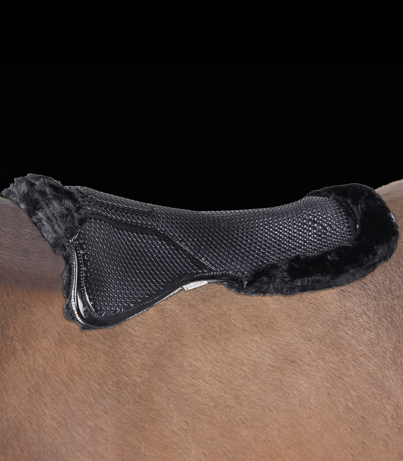 - Syntetyczne futro: Podkładka wyłożona syntetycznym futrem z przodu i tyłu poprawia komfort i amortyzację, zapewniając odpowiednią stabilność siodła.