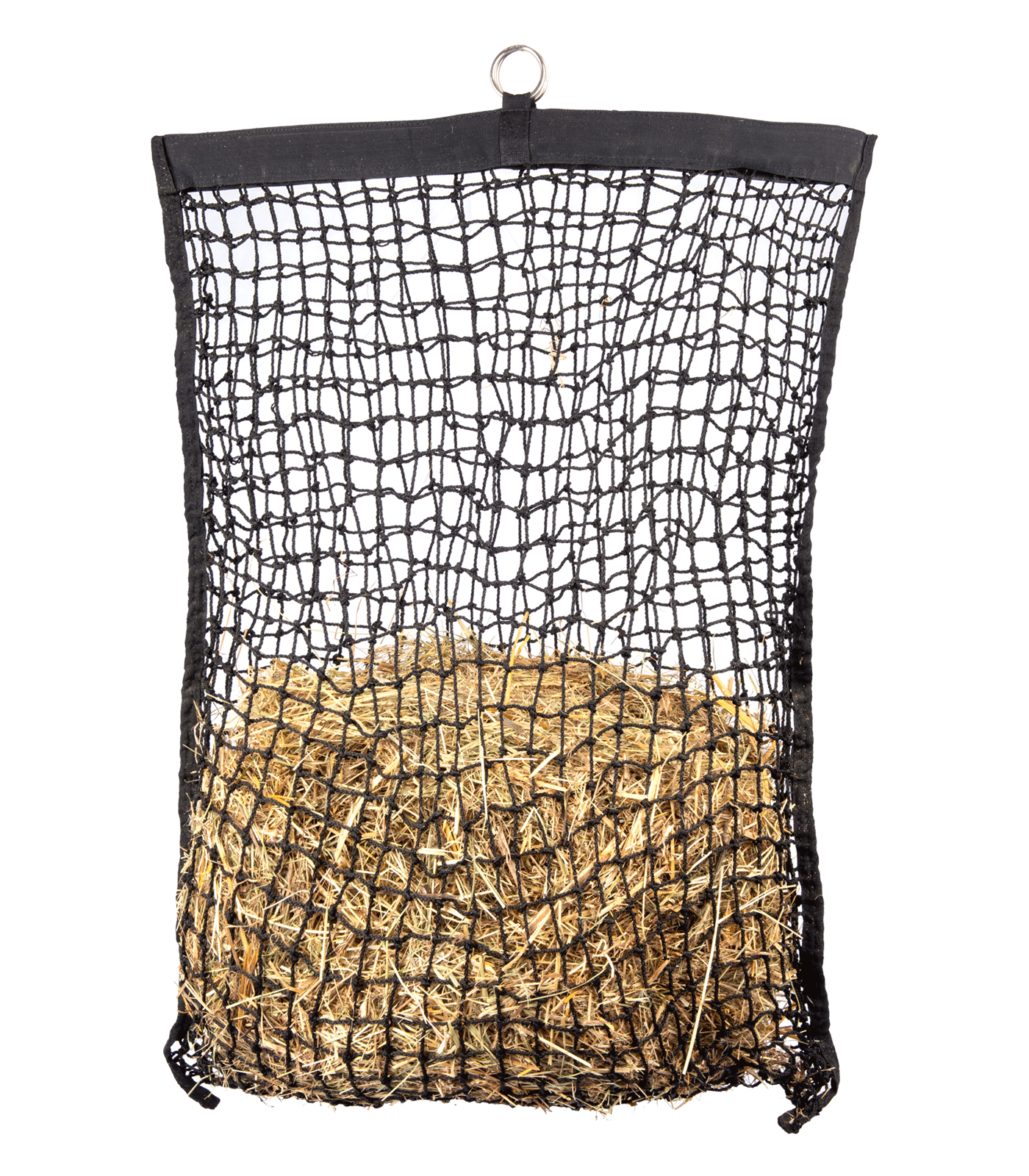 Siatka na siano z wbudowanym elastycznym mechanizmem ułatwiającym napełnianie została zaprojektowana z myślą o wygodzie i trwałości. Dzięki dodatkowemu hakowi do zawieszania i mocnemu zapięciu na rzep, produkt jest nie tylko funkcjonalny, ale również zapewnia bezpieczeństwo użytkowania. Małe otwory w siatce umożliwiają koniom powolne, kontrolowane pobieranie siana, co przyczynia się do lepszego trawienia.