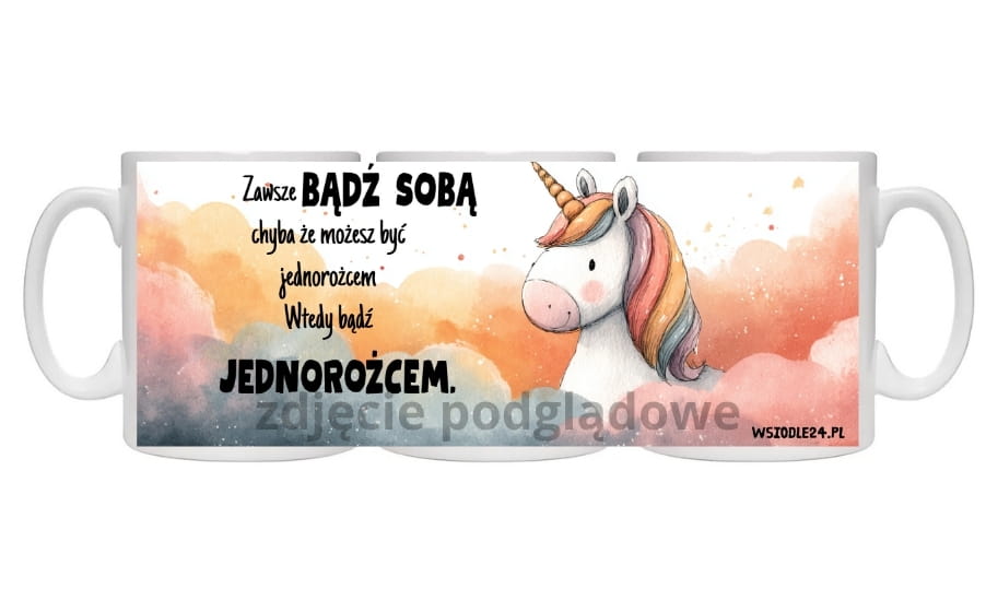 Na kubku znajduje się napis wsiodle24.pl. Proszę pamiętać, że grafika przedstawiona na ostatnim zdjęciu powinna być traktowana jedynie jako podglądowy obrazek.