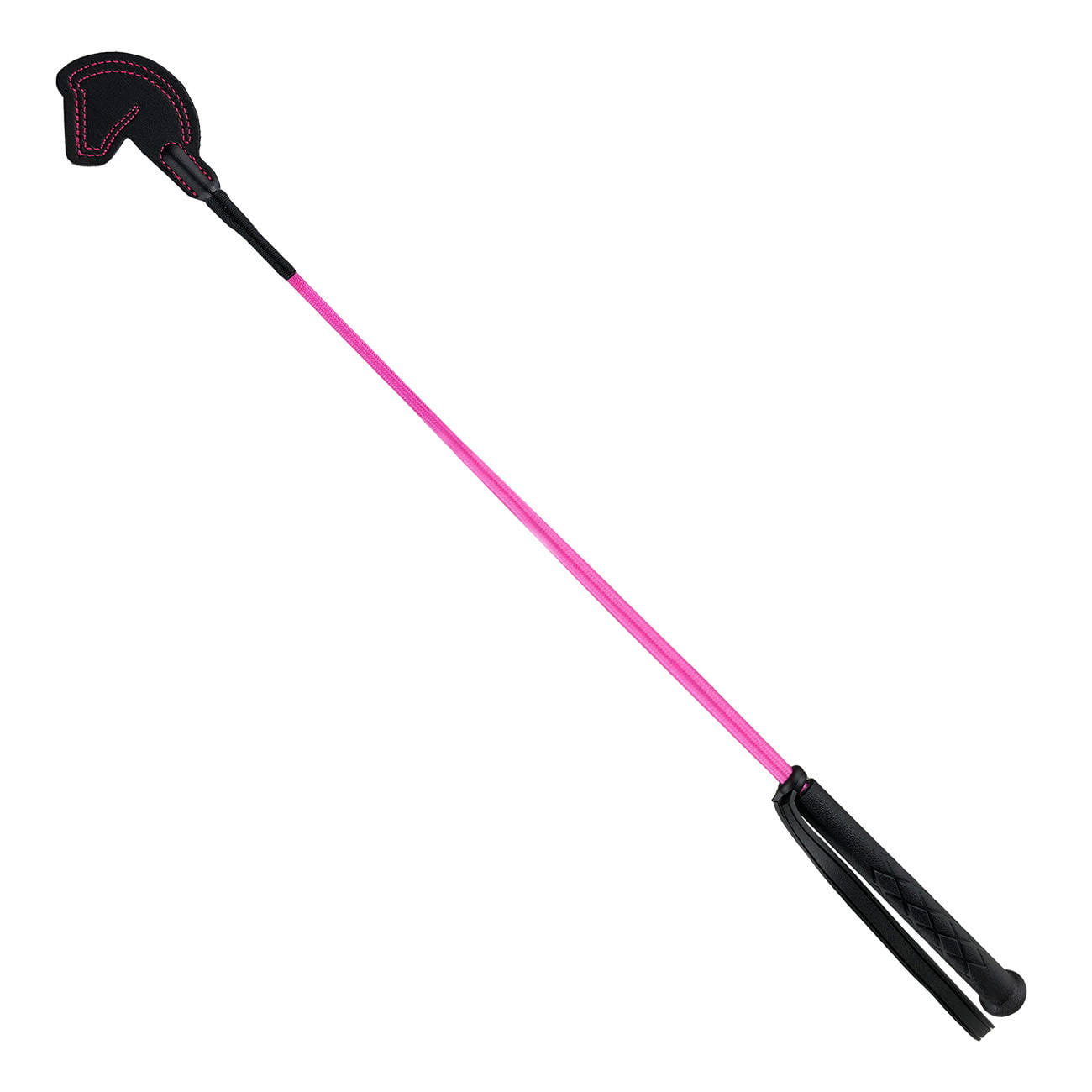 YORK Bat Salsa 65cm to wyjątkowy bat skokowy, który wyróżnia się oryginalnym designem. Patka w kształcie głowy konia, wykonana z materiału imitującego skórę, nadaje mu charakterystyczny wygląd. Dodatkowo, uchwyt z tłoczonym wzorem zapewnia pewny chwyt, a pasek na nadgarstek zapobiega wypadnięciu bata podczas jazdy.