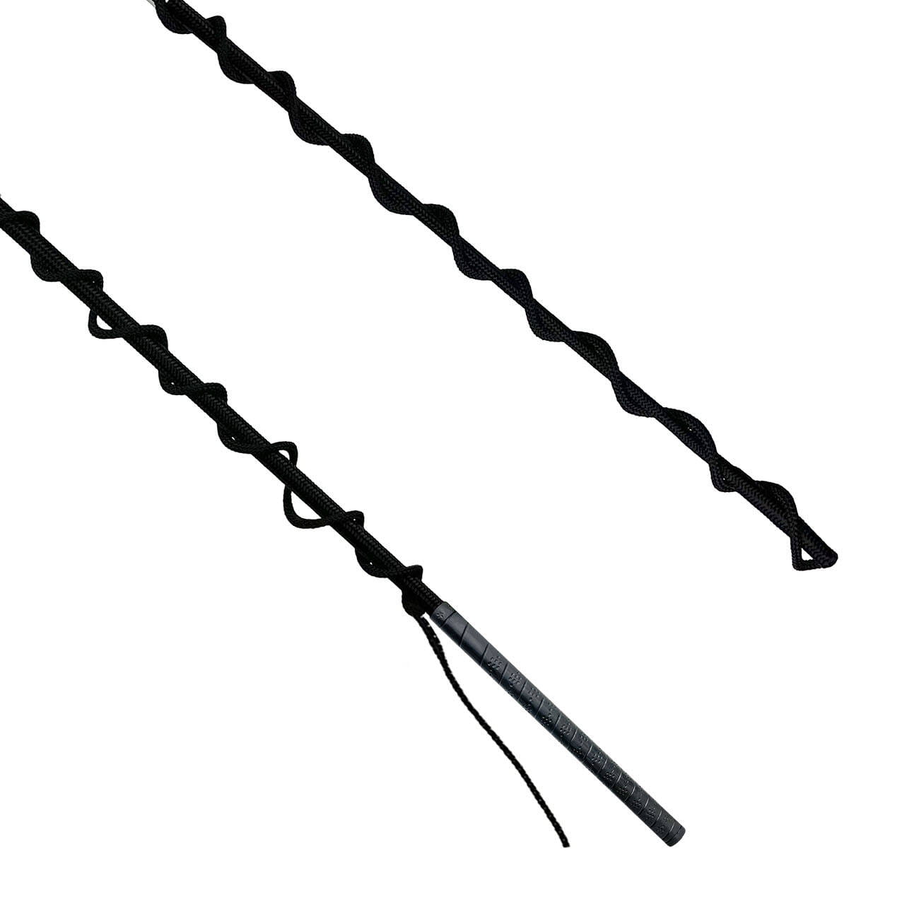 Gumowy uchwyt zapewnia wygodny i pewny chwyt, co sprawia, że bat idealnie nadaje się do długotrwałego użytkowania. Końcówka sznurka została przeszyta odblaskową nicią, co zwiększa widoczność i poprawia bezpieczeństwo w słabym oświetleniu.