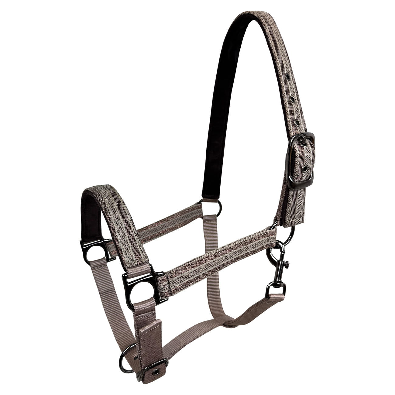 Kantar YORK Karmen to połączenie eleganckiego designu i funkcjonalności. Subtelnie połyskujące przeszycia oraz okucia w kolorze gun smoke nadają mu wyjątkowego wyglądu. Dzięki regulacji w okolicy nachrapnika i potylicy można go precyzyjnie dopasować, a miękkie podszycie zwiększa komfort noszenia, chroniąc skórę konia przed otarciami.