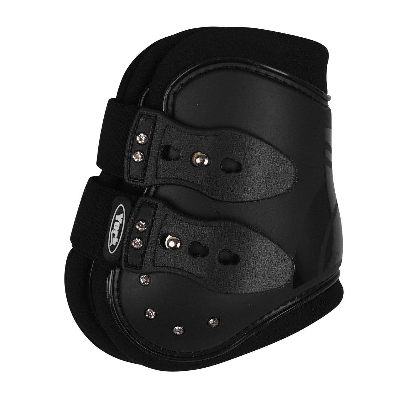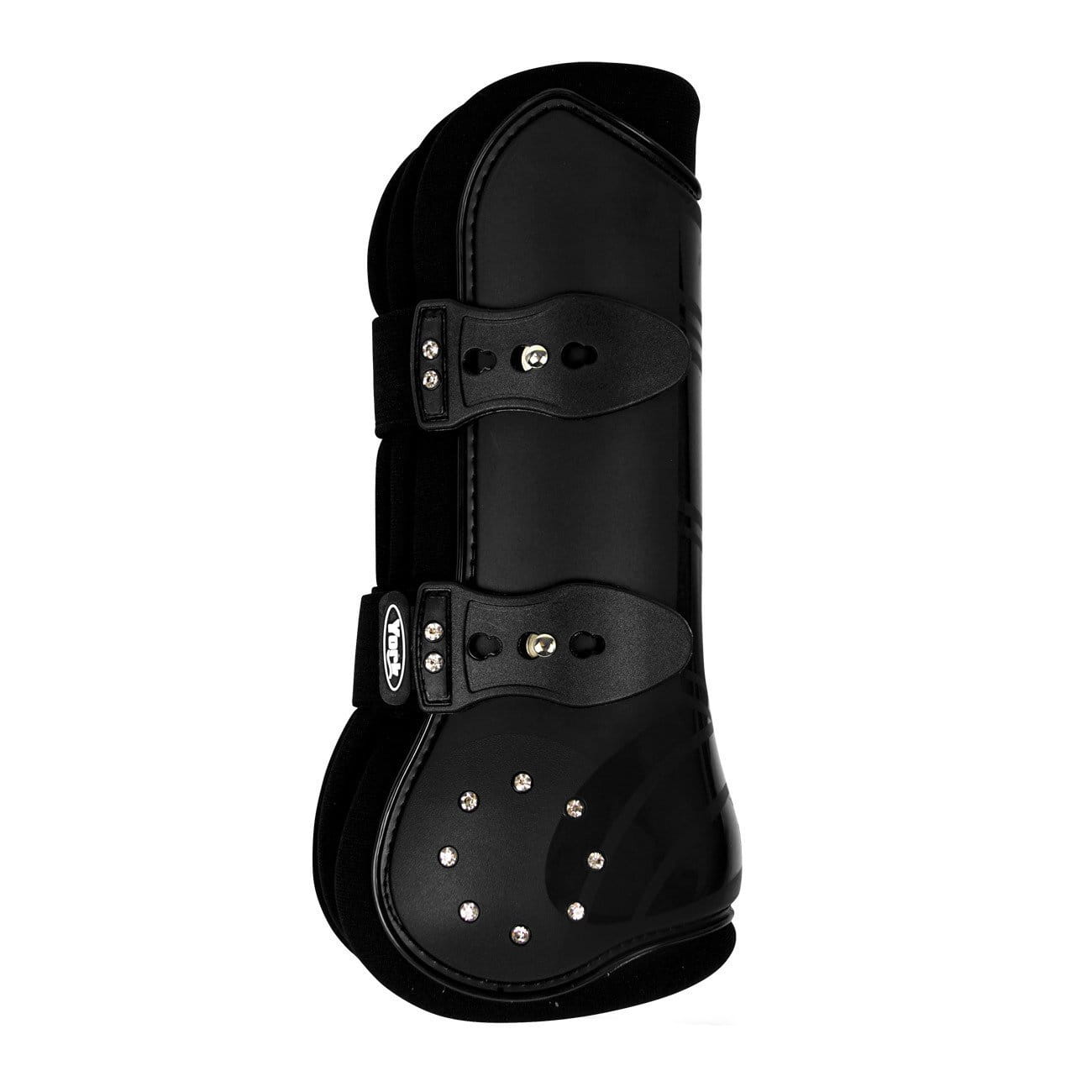 Komplet ochraniaczy skokowych Vena to połączenie funkcjonalności z elegancją. Dzięki anatomicznemu kształtowi, te ochraniacze doskonale dopasowują się do nóg konia, zapewniając mu komfort oraz ochronę podczas skoków. Subtelne cyrkonie nadają im wyjątkowego szyku, wyróżniając je na tle innych modeli. Ochraniacze wyposażone są w wygodne zapięcie na kołki, które minimalizuje ryzyko przypadkowego odpięcia, oraz elastyczne paski, które zapewniają idealne dopasowanie do nóg konia.