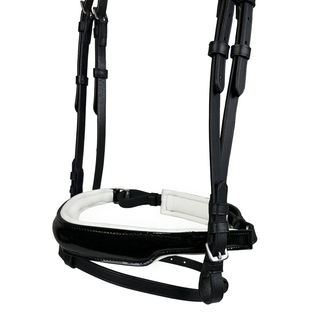 - Lakierowana skóra: Skórzane wykończenie nachrapnika dodaje ogłowiu elegancji, podkreślając jego wyjątkowy design.