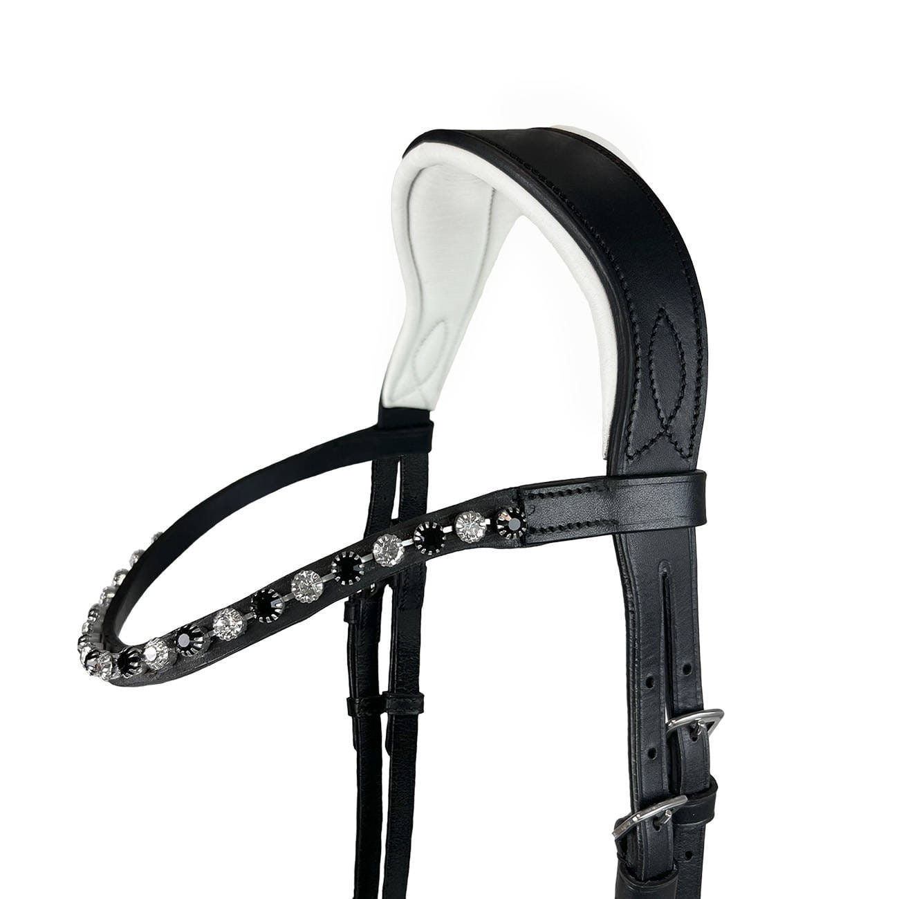 - Opadający naczółek z kryształkami: Ozdobiony dwukolorowymi kryształkami, nadaje ogłowiu niepowtarzalny, luksusowy wygląd.