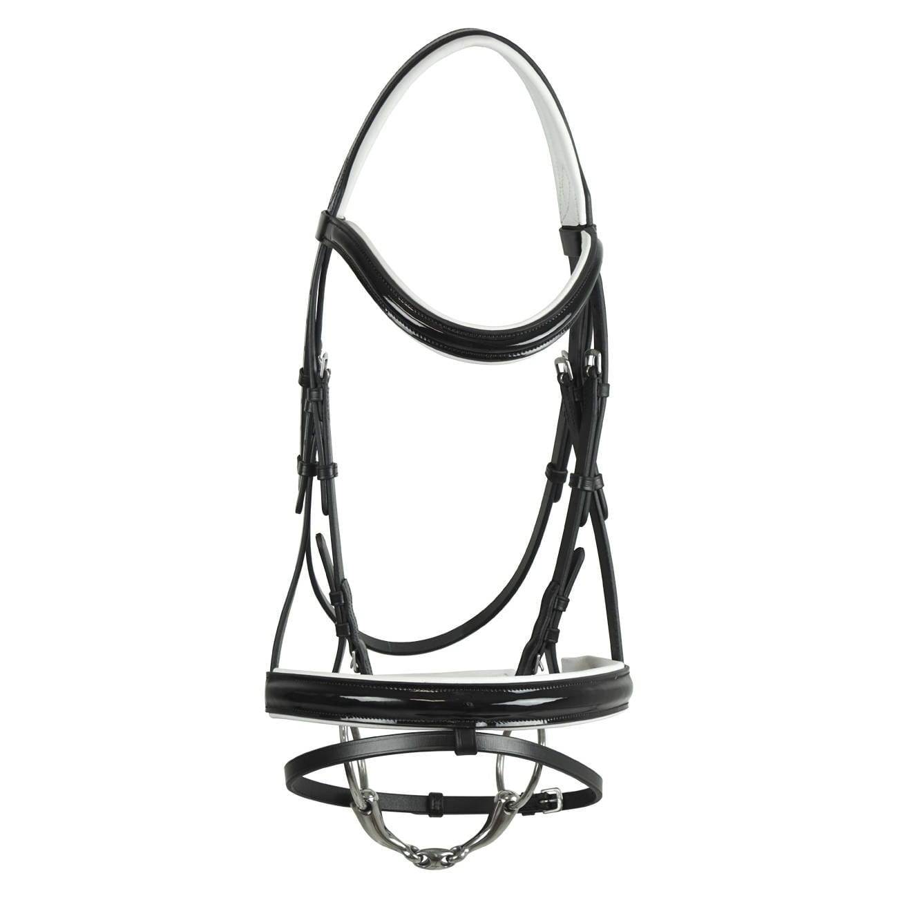 Ogłowie York Alexis to elegancka, skórzana tranzelka zaprojektowana z myślą o estetyce i komforcie konia. Wykonane z najwyższej jakości materiałów, ogłowie posiada nachrapnik typu szwedzkiego, anatomicznie wyprofilowany pasek potyliczny oraz opadający naczółek z lakierowanej skóry. Miękkie, białe podszycia na nachrapniku, naczółku i potylicy dodają ogłowiu elegancji, zapewniając jednocześnie komfort noszenia. W zestawie z wodzami parciano-skórzanymi, to ogłowie stanowi doskonały wybór zarówno na zawody, jak i do codziennego użytkowania.