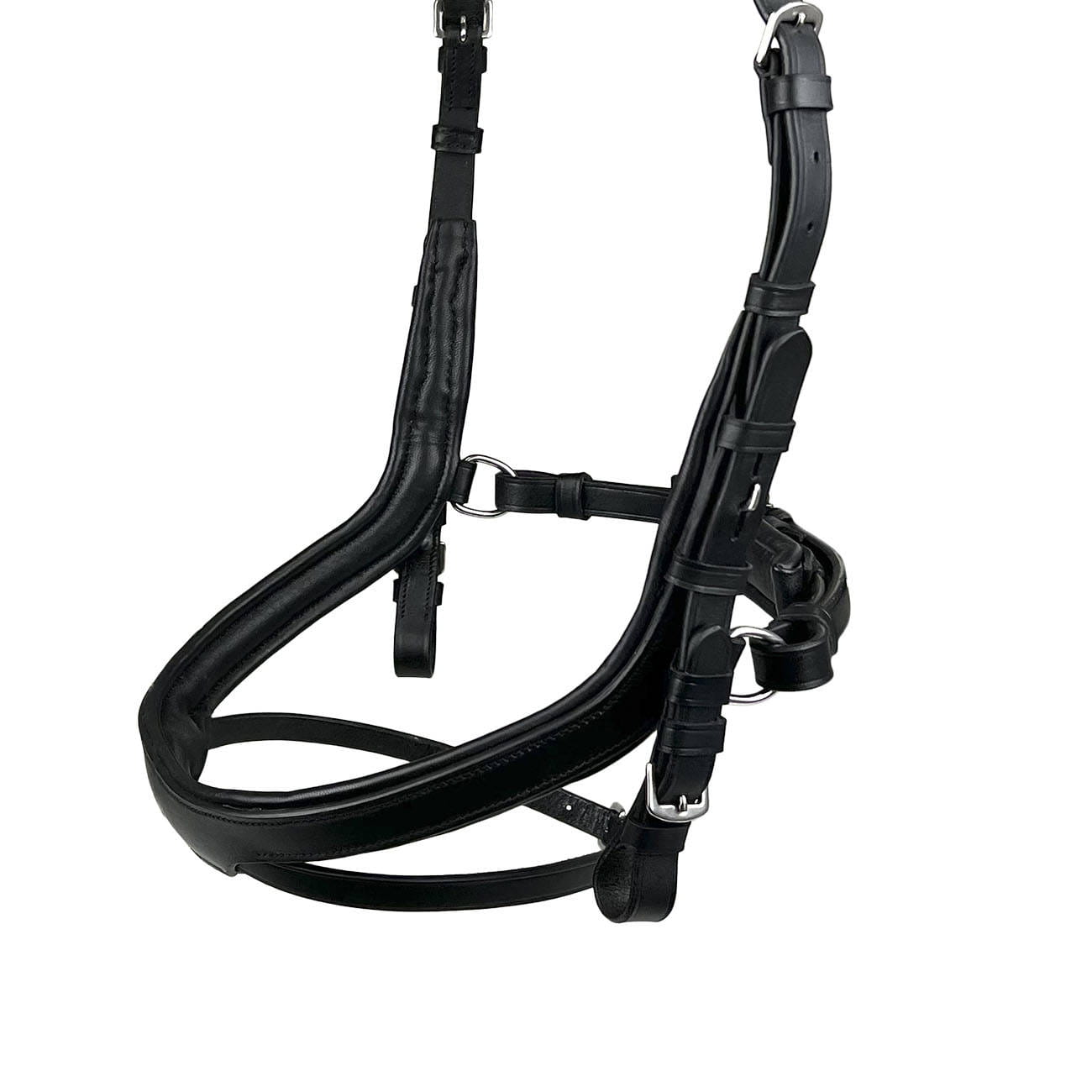 - Anatomiczny kształt: Szeroki nagłówek potyliczny zapewnia lepszy rozkład nacisku, a nachrapnik typu kombinowanego z tunelem na pasek krzyżowy zwiększa komfort.