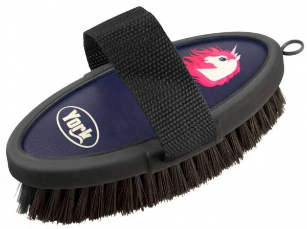 YORK Szczotka do sierści Unicorn to doskonały wybór do codziennej pielęgnacji konia. Wykonana z syntetycznego włosia, skutecznie usuwa kurz i brud, zapewniając gładką i lśniącą sierść. Szczotka posiada gumowane boki, co poprawia komfort trzymania, zapewniając pewny chwyt nawet podczas długotrwałego użytkowania. Dzięki temu narzędzie pielęgnacyjne jest łatwe w użyciu, a jego ergonomiczny kształt zwiększa wygodę pracy.